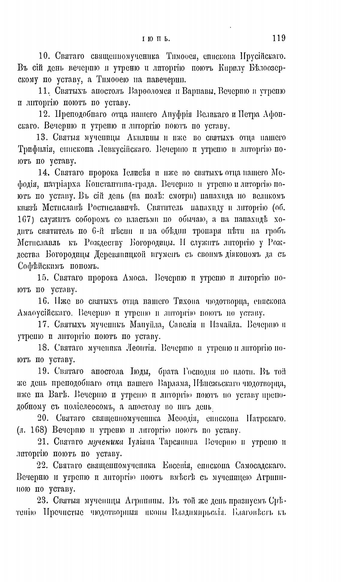 (л. 168) Вечерпю утреню п по уставу.