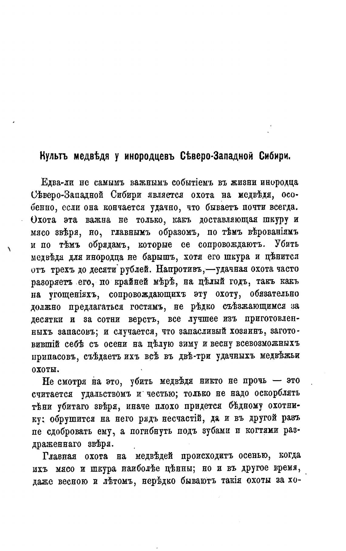 Нультъ медв%дя у инородцевъ С%веро.Западной Сибири.