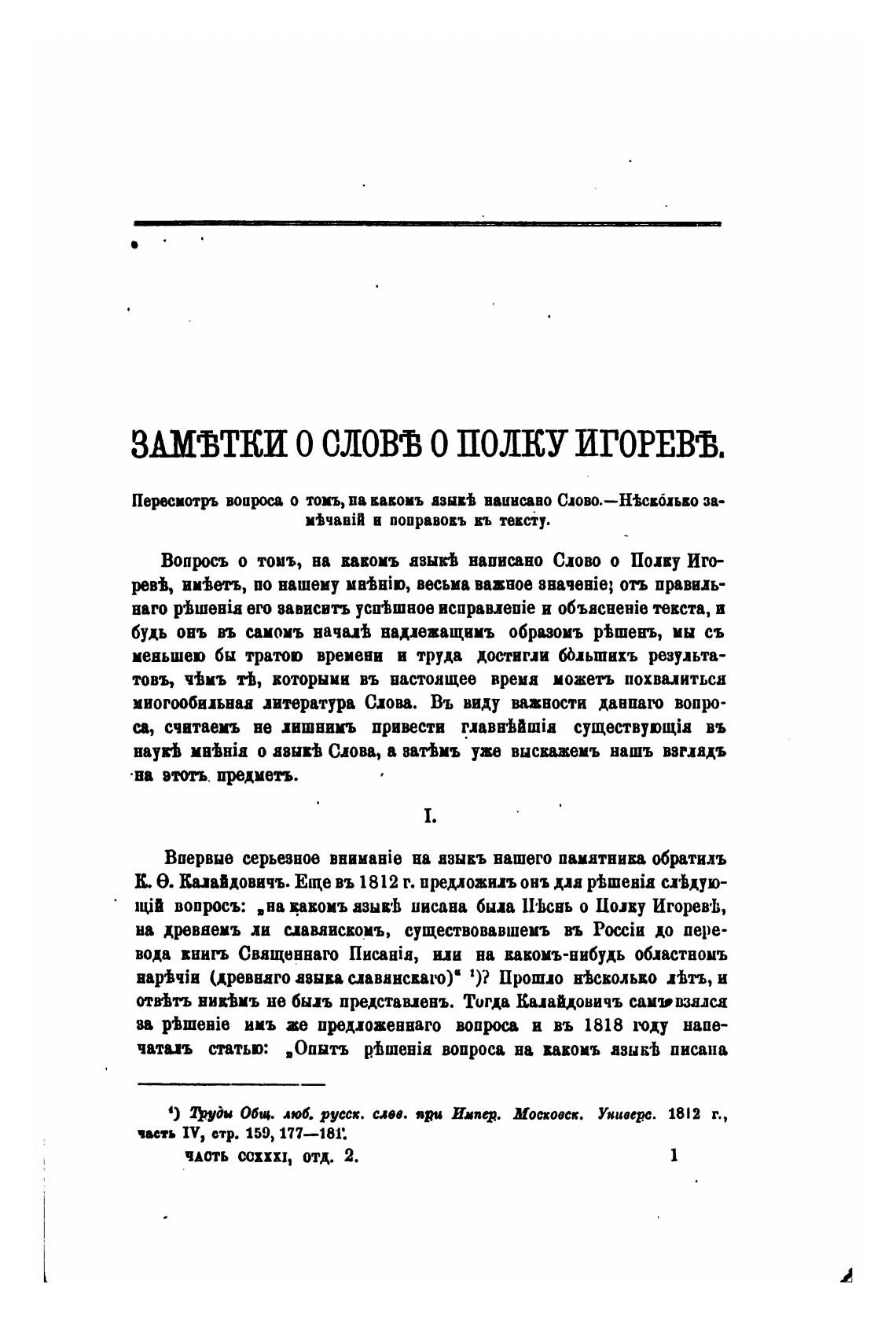 Вопрсъ о тошъ, на какомъ азык•ђ написано Сово о Полку Иго-