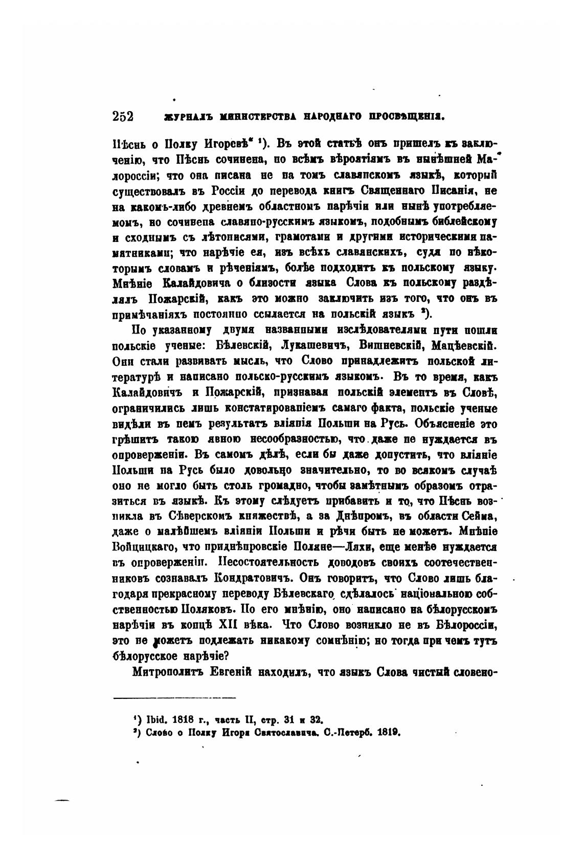 1) СаоЬо о Поавт Игори Святосаавичв. С.-Пет•рб. 1819.