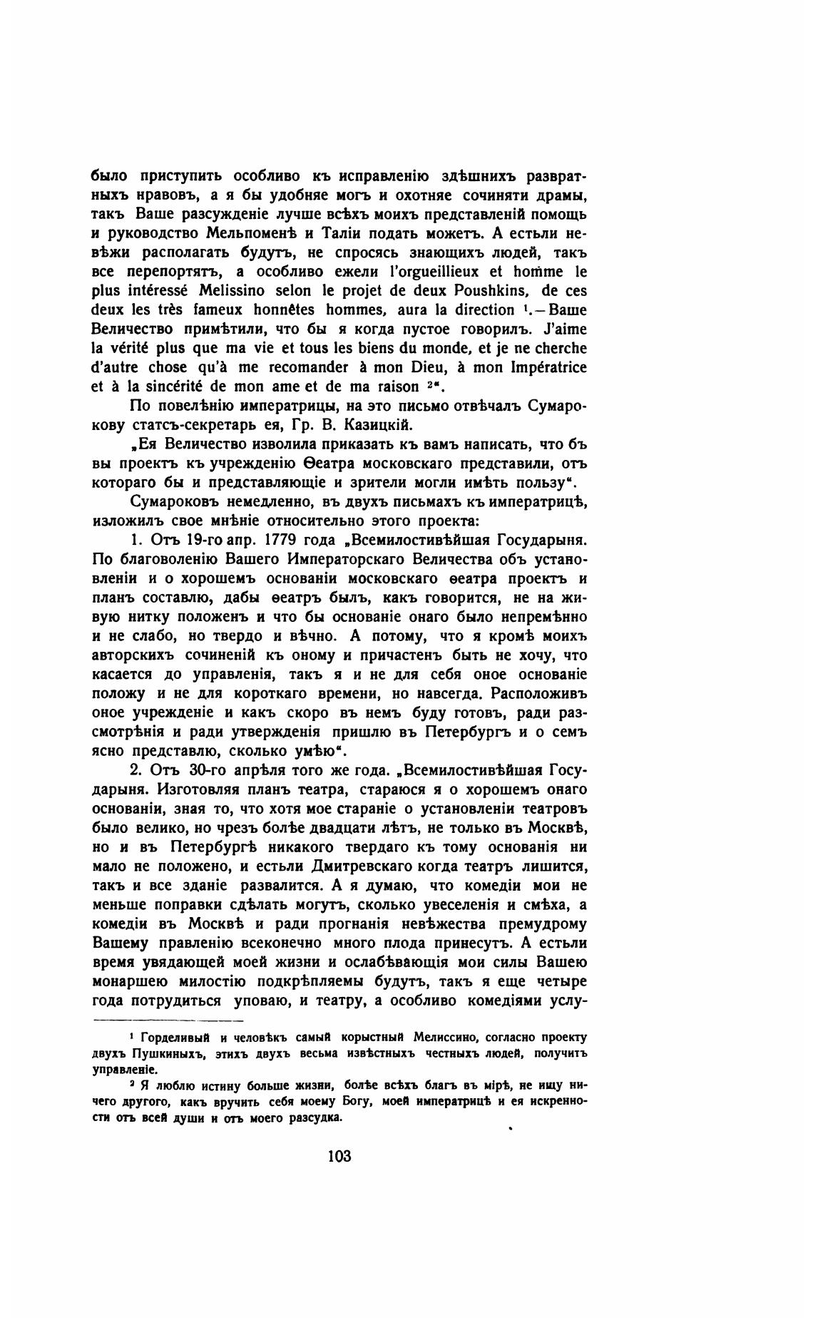 Сумароковъ немедленно, въ двухъ письмахъ кь императриц%,