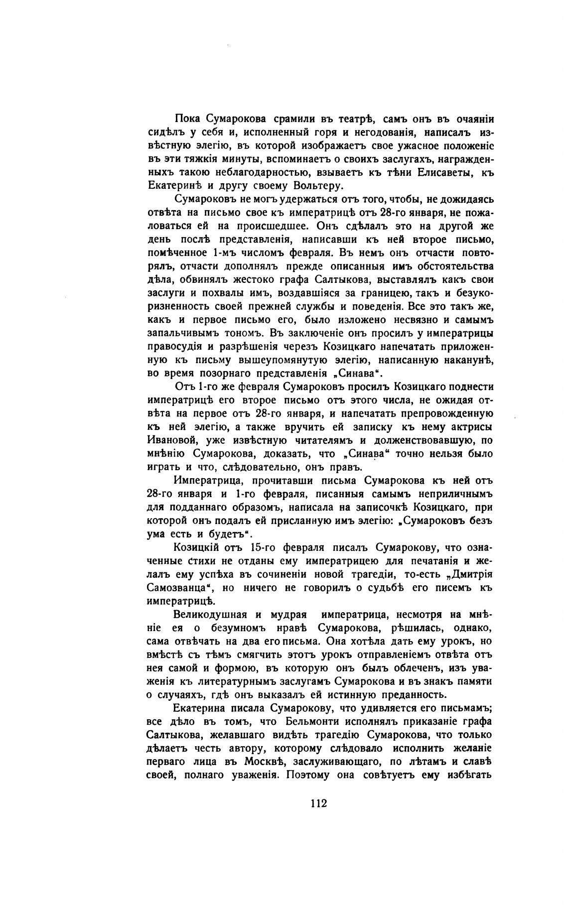Императрица, прочитавши письма Сумарокова кь ней отъ