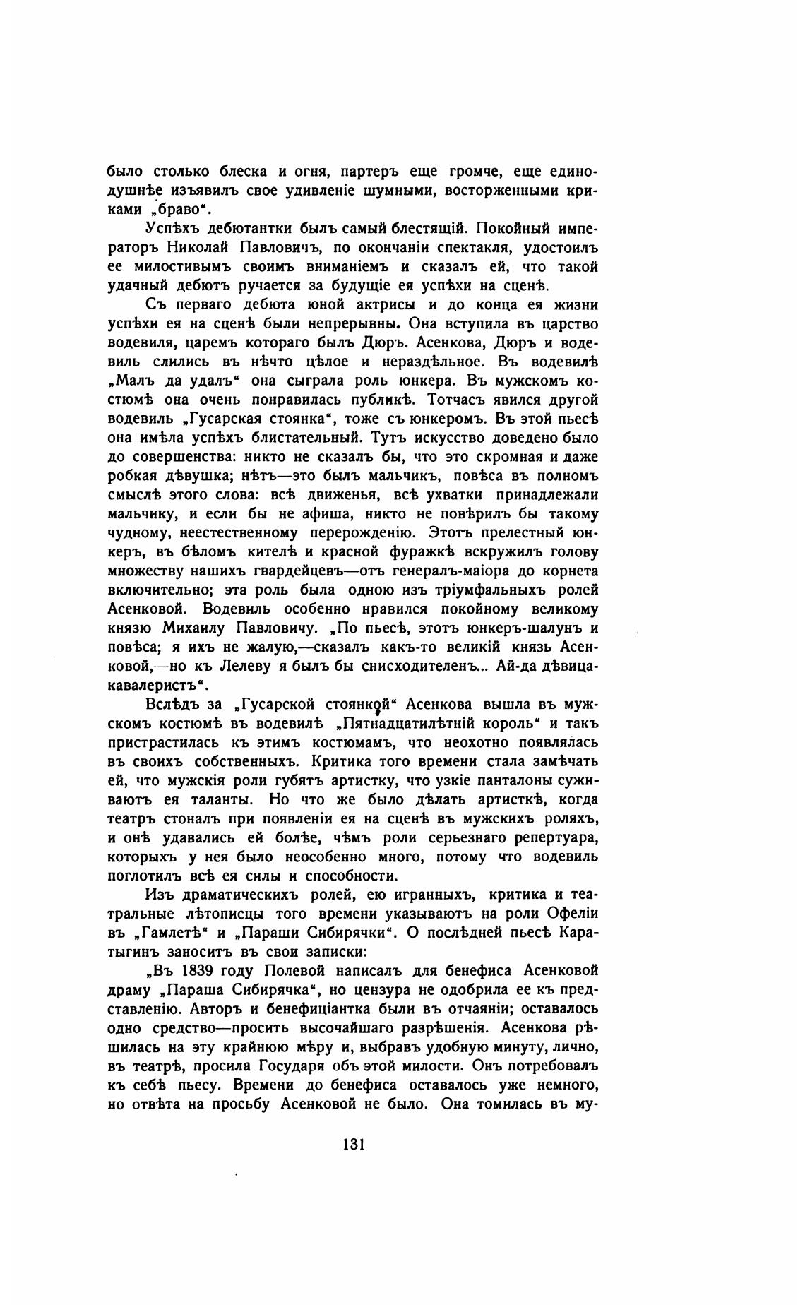„Въ 1839 году Полевой написалъ для бенефиса Асенковой