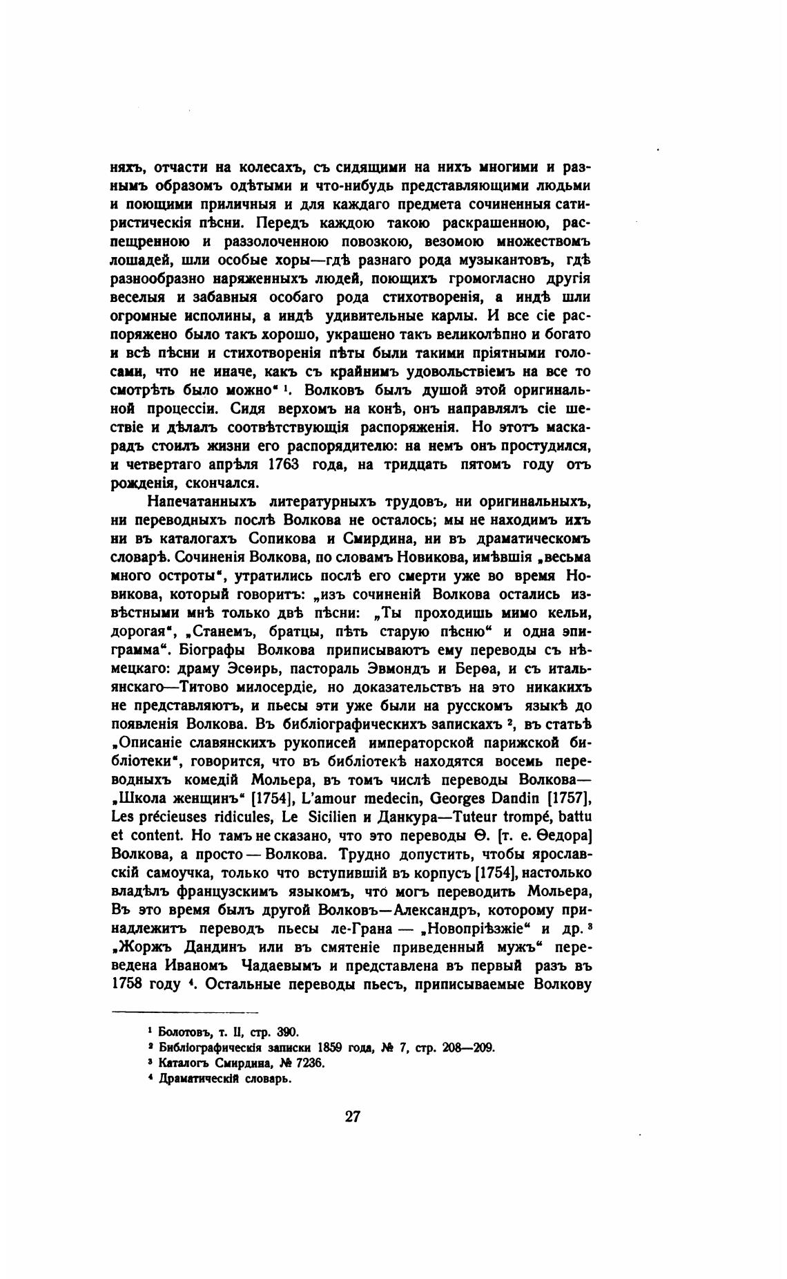 водныхъ Мольера, въ томъ числ% переводы Волкова—
