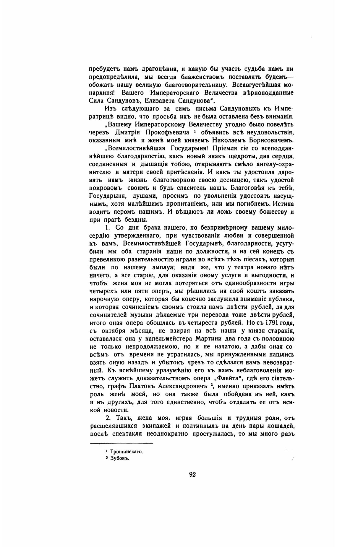 Изъ сл•Ьдующаго за симъ письма Сандуновыхъ кь Импе-