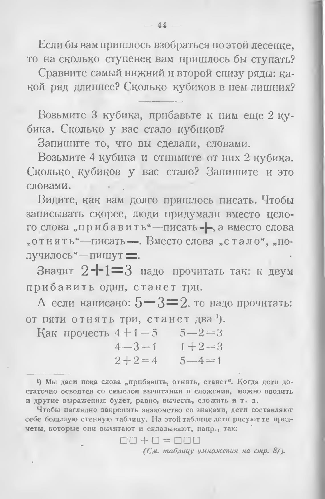 *) Мы даем пока слова „прибавить, отнять, станет”. Когда дети до