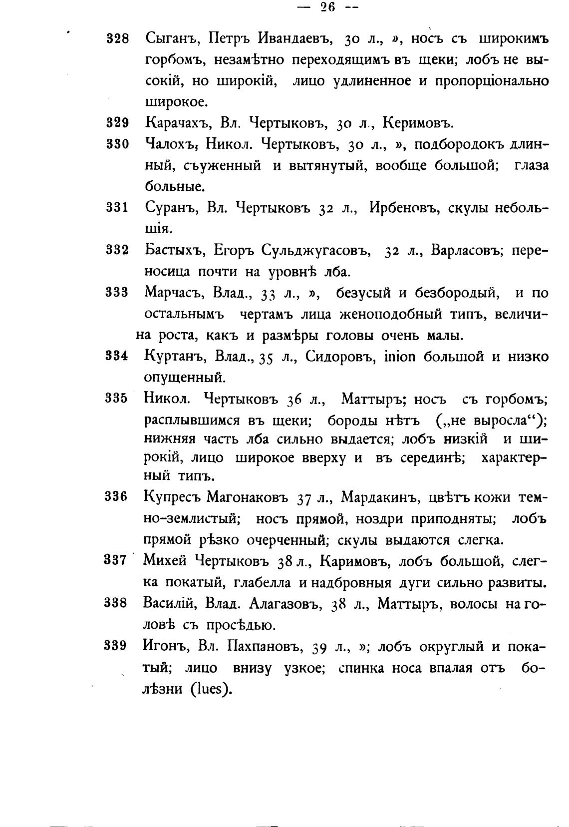 Суранъ, Вл. Чертыковъ 32 л., Ирбеновъ, скулы неболь-