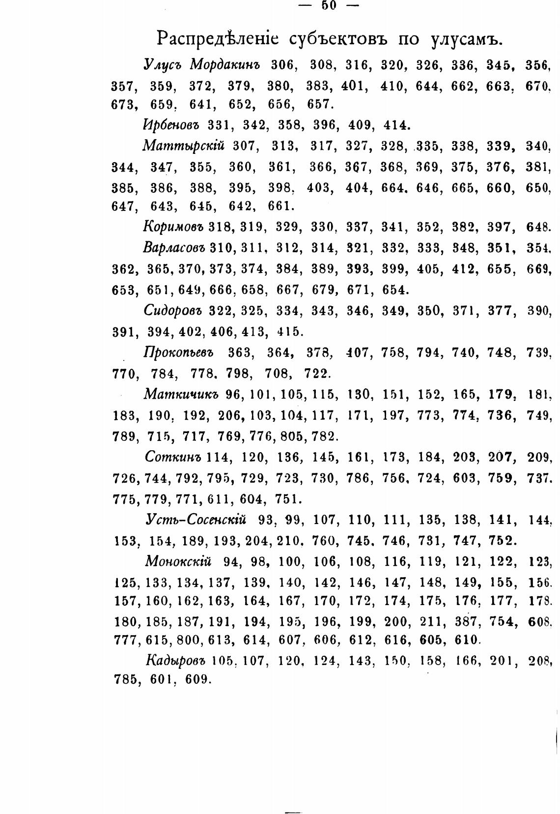 субъектовъ по улусамъ.