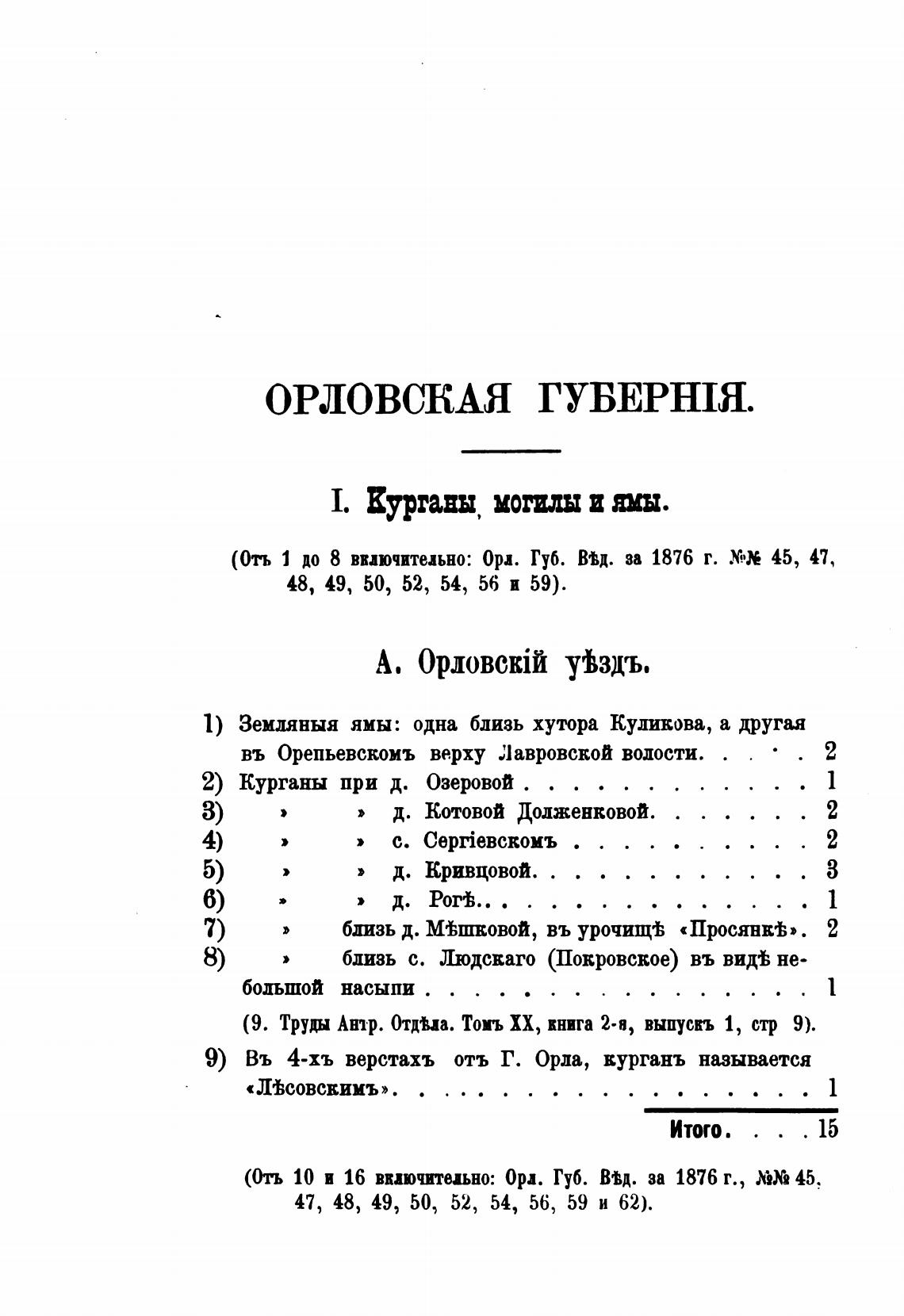 (Отъ 1 до 8 включительно: Орд. Губ. ВЫ. за 1876 г. 45, 47,