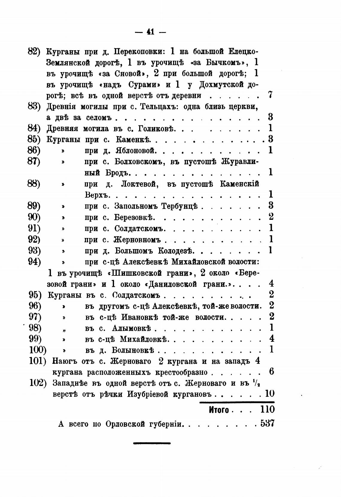 верстЬ отъ р±чки кургановъ . . . . .
