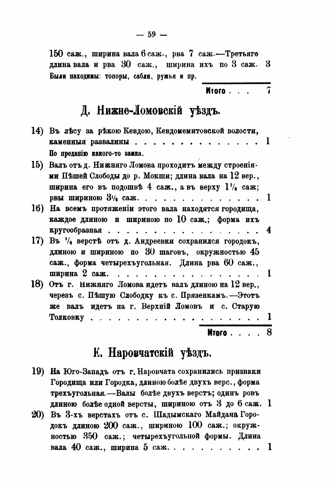 19) На Юго-Западъ отъ г. Наровчата сохранились признаки