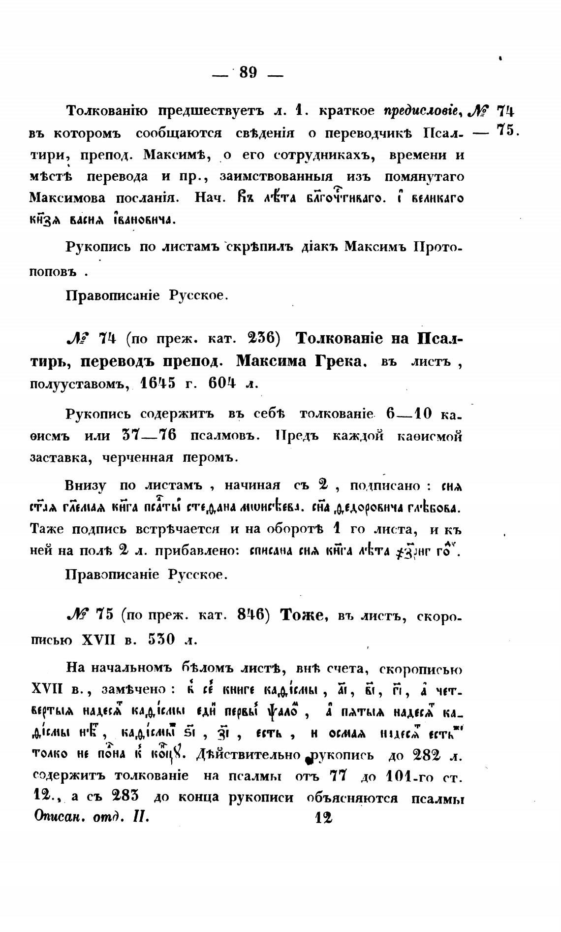 Л? 75 (по преж. кат. 846) Тоже, въ листъ, скоро-