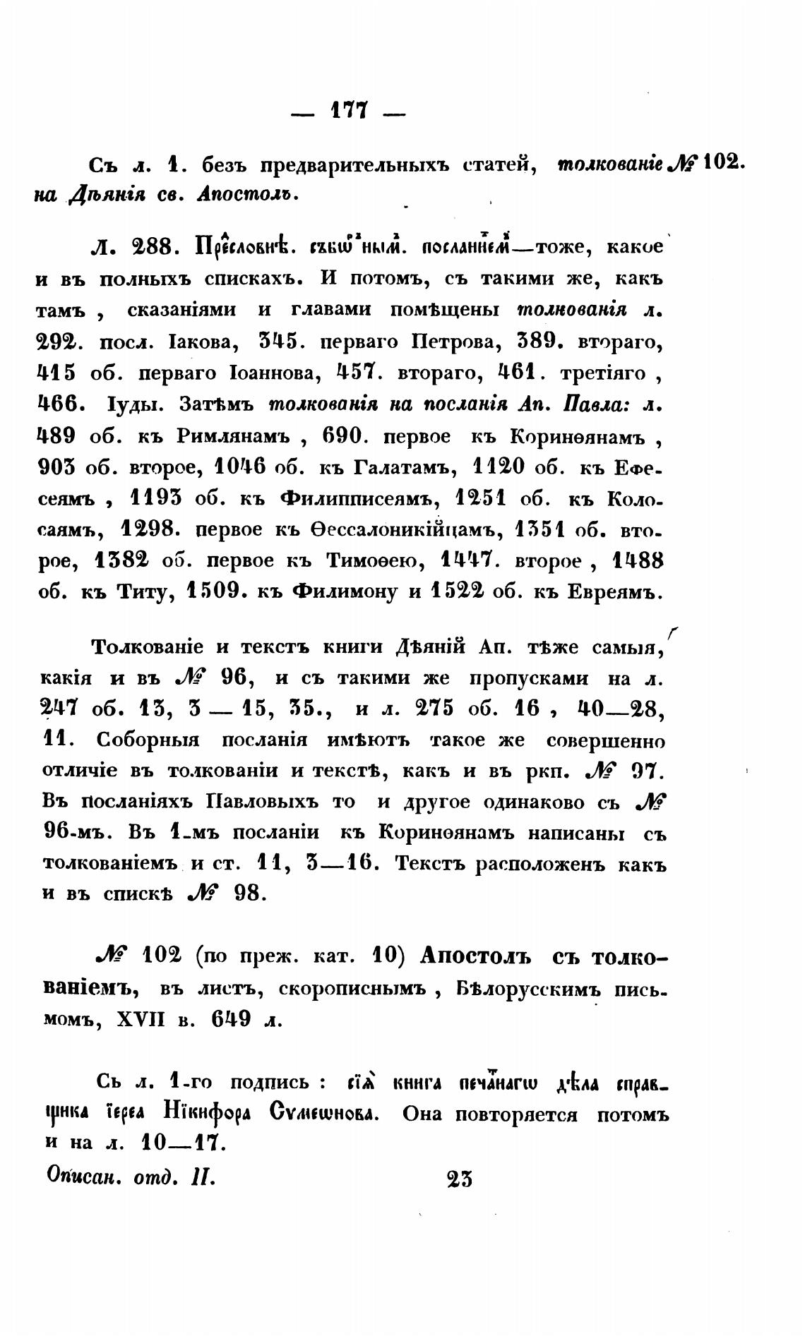 Л? 102 (по преж. кат. 10) Апостоль ст» толко—
