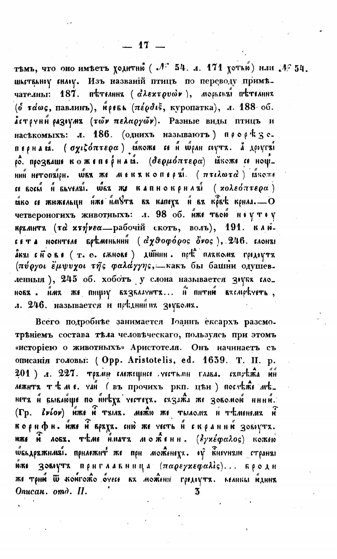 о животныхъ» Аристотеля. Онъ начинаетъ съ