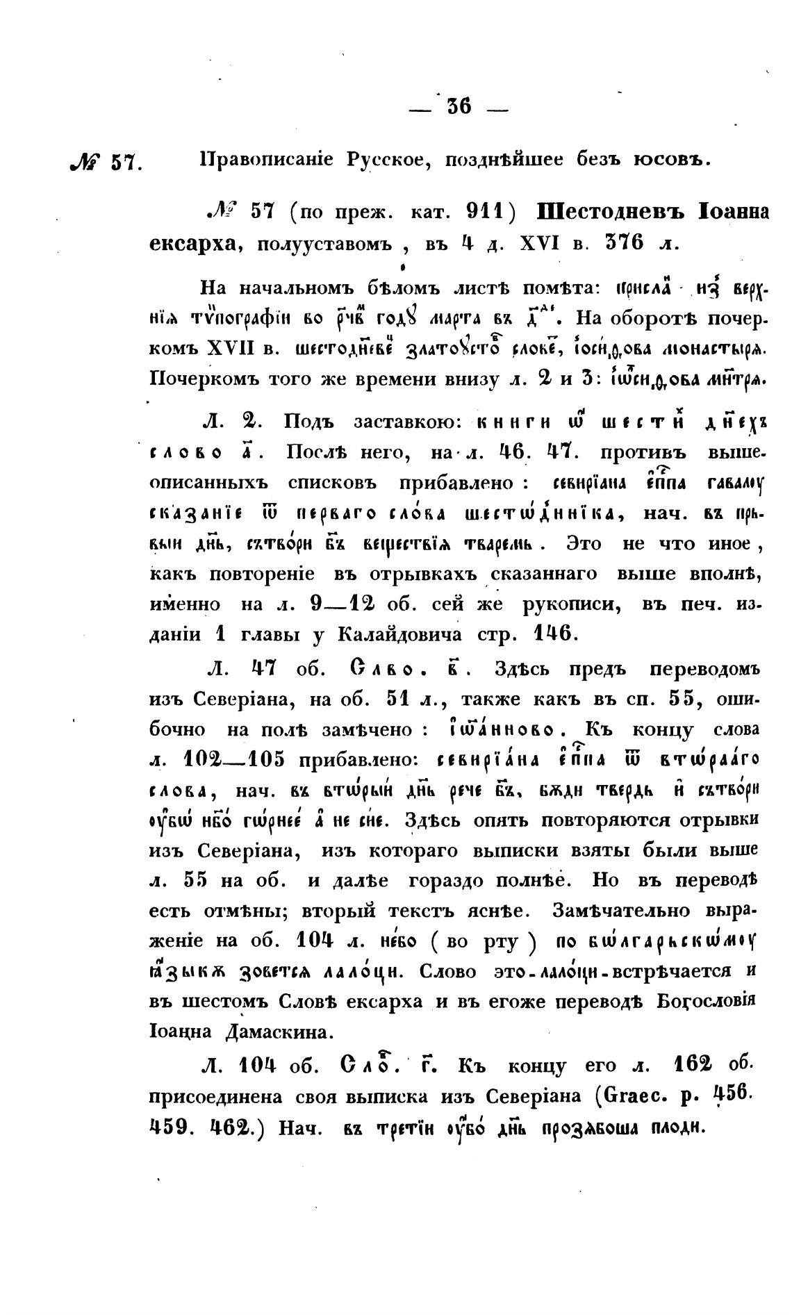 .,'V 57 (по преж. кат. 911 ) Шестодневъ Иоанна