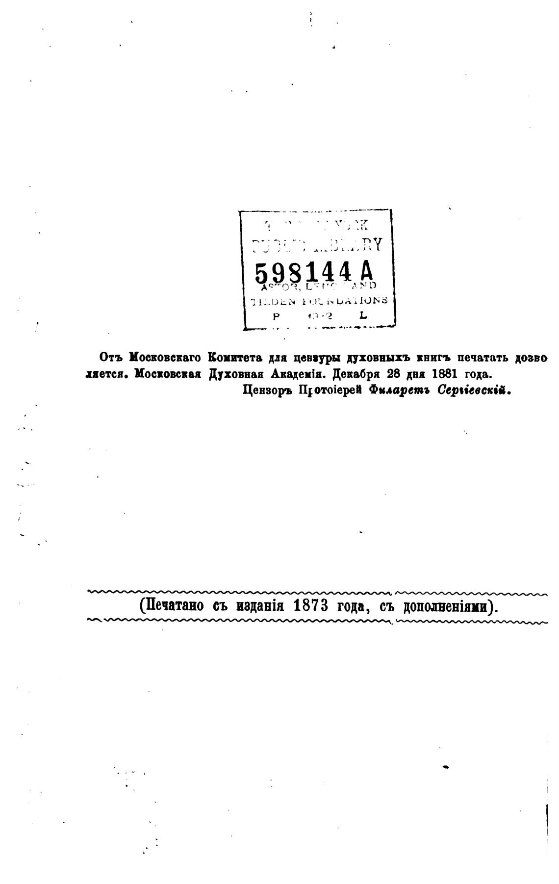 Отъ Мосвовсваго Комитета дли цензуры духовныхъ внигъ печатать дозво