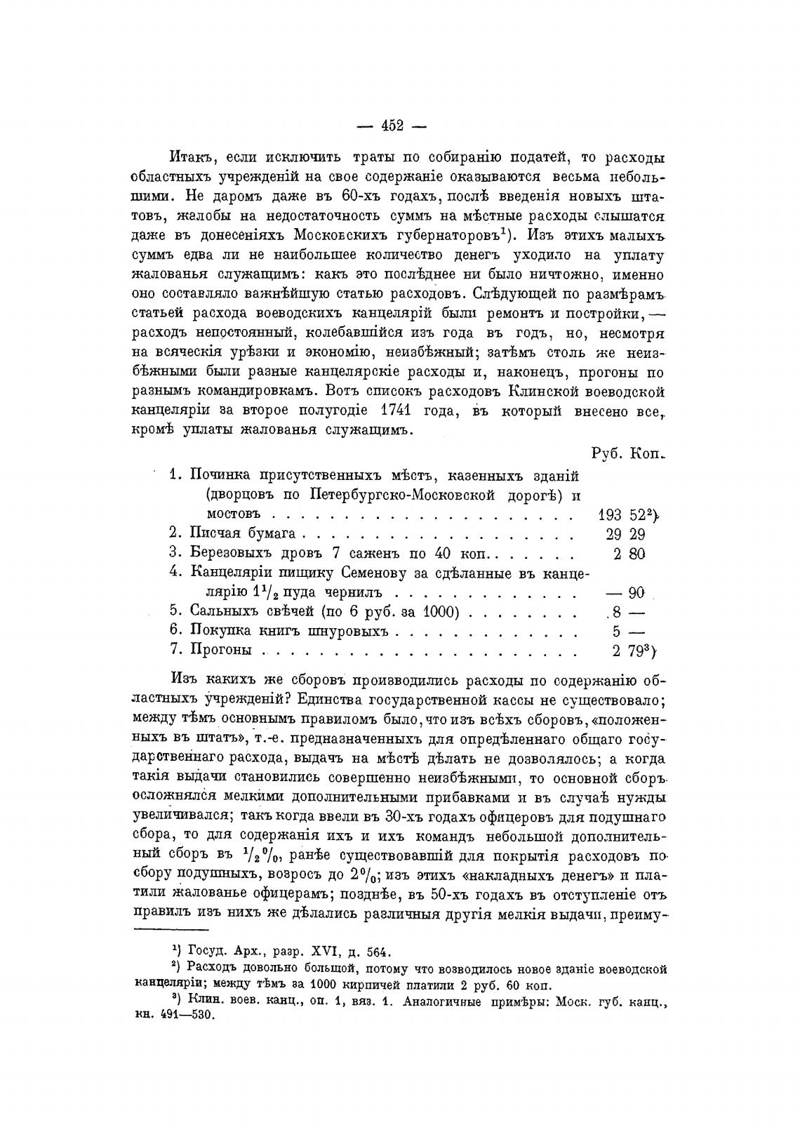 разнымъ командировкамъ. Вотъ списокъ расходовъ Клинской воеводской