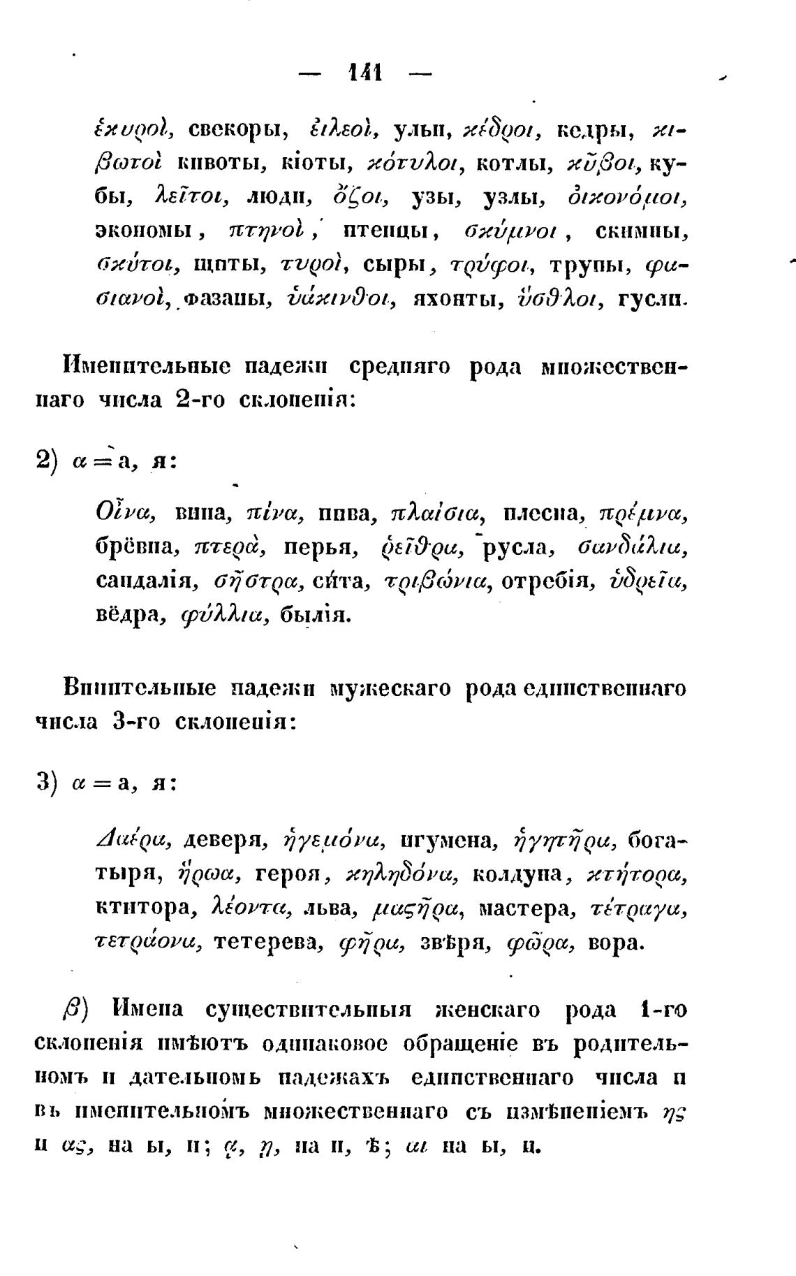 Д) Имена супцествптельпыя женскаго рода 1-го
