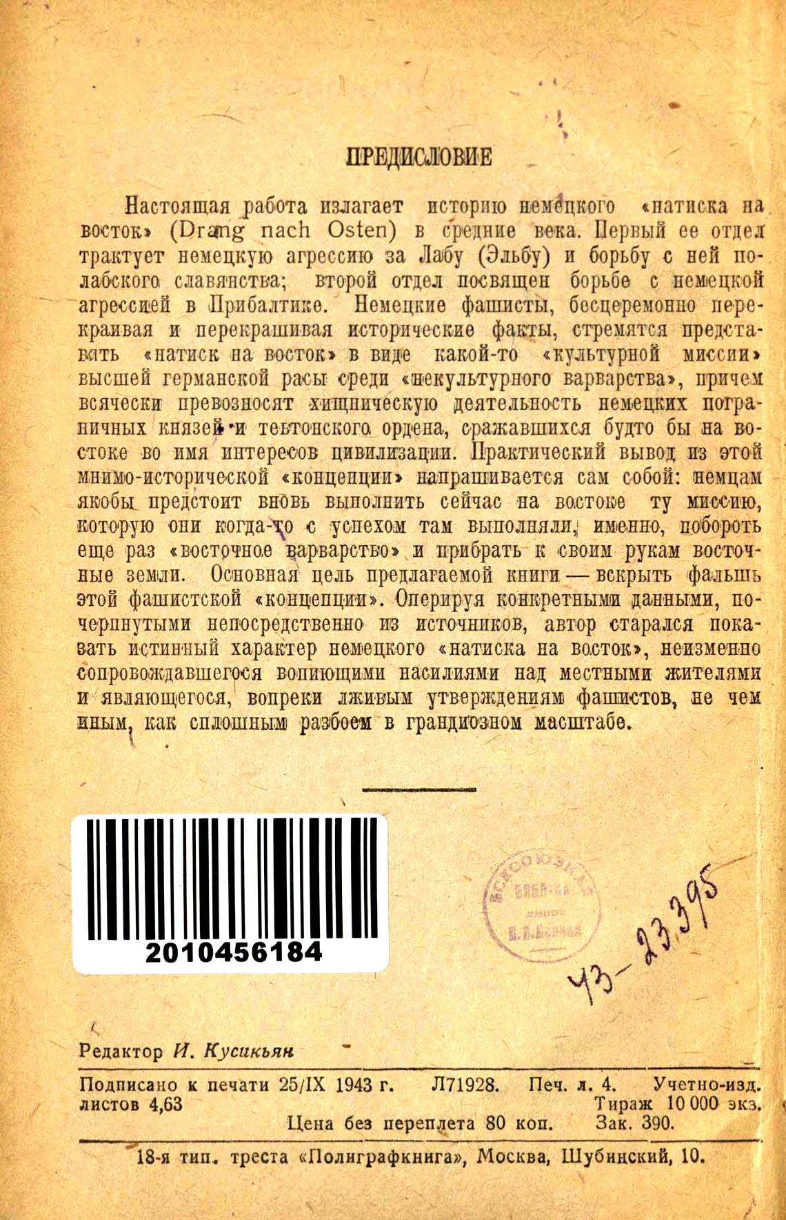этой фашистской «концепции». Оперируя конкретными данными, почерпнутыми непосредственно из источников, автор старался показать истинный характер немецкого «натиска на восток», неизменно