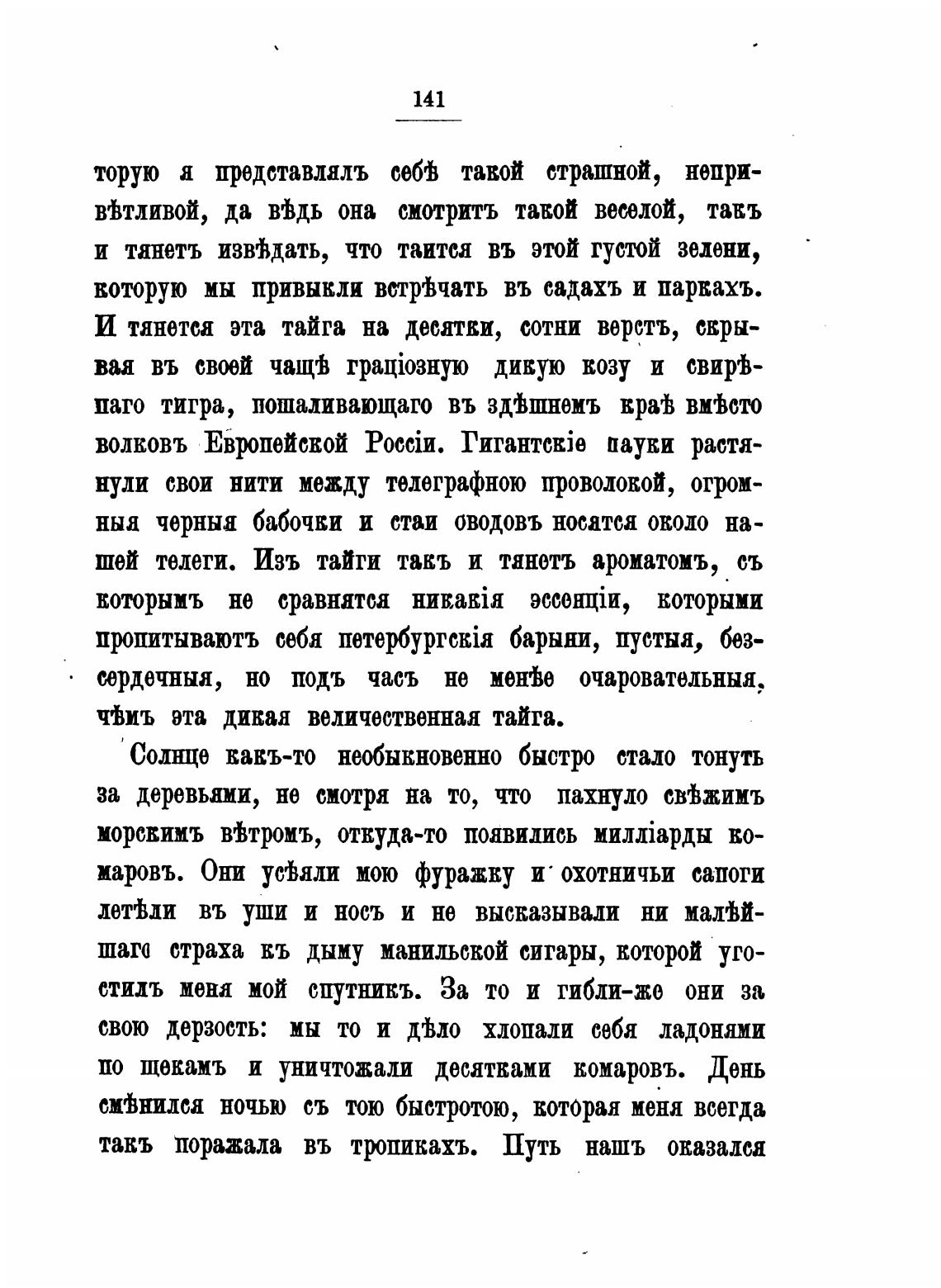 по щекамъ и уничтожали десятками комаровъ. День