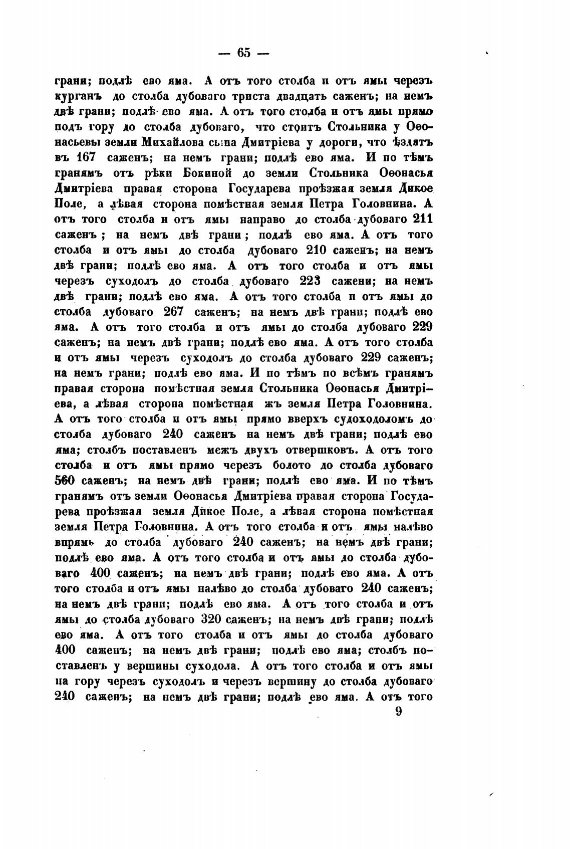 и отъ ямы черезъ суходоль до столба дубоваго 229 сажень;