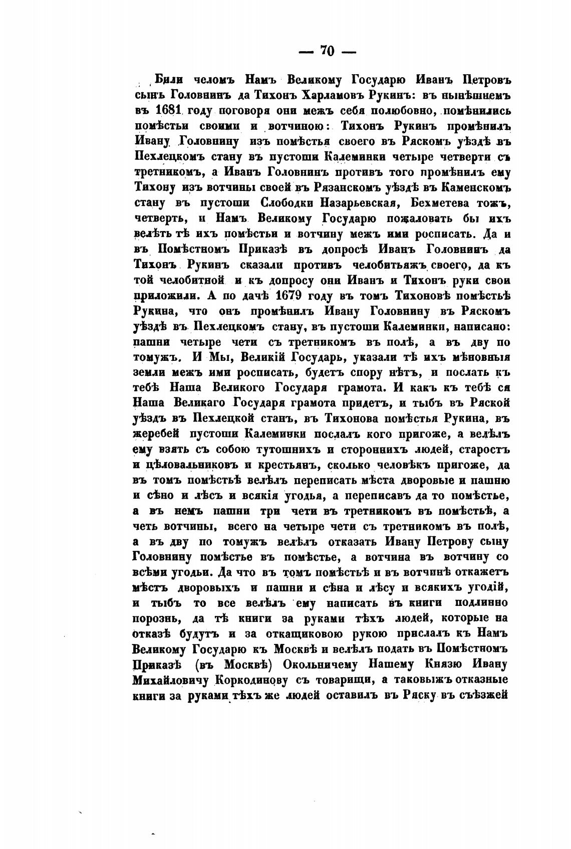 Тихону изъ вотчины своей въ Рязанскомъ У'Ьзд•Ь въ Каменскомъ