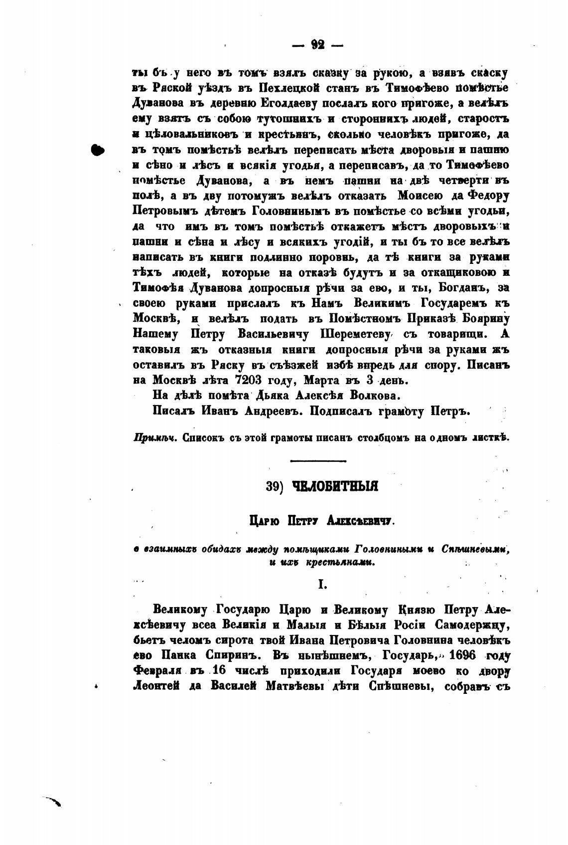 Писал Ивань Андреевъ. Подписахь грамЬту Пегръ.