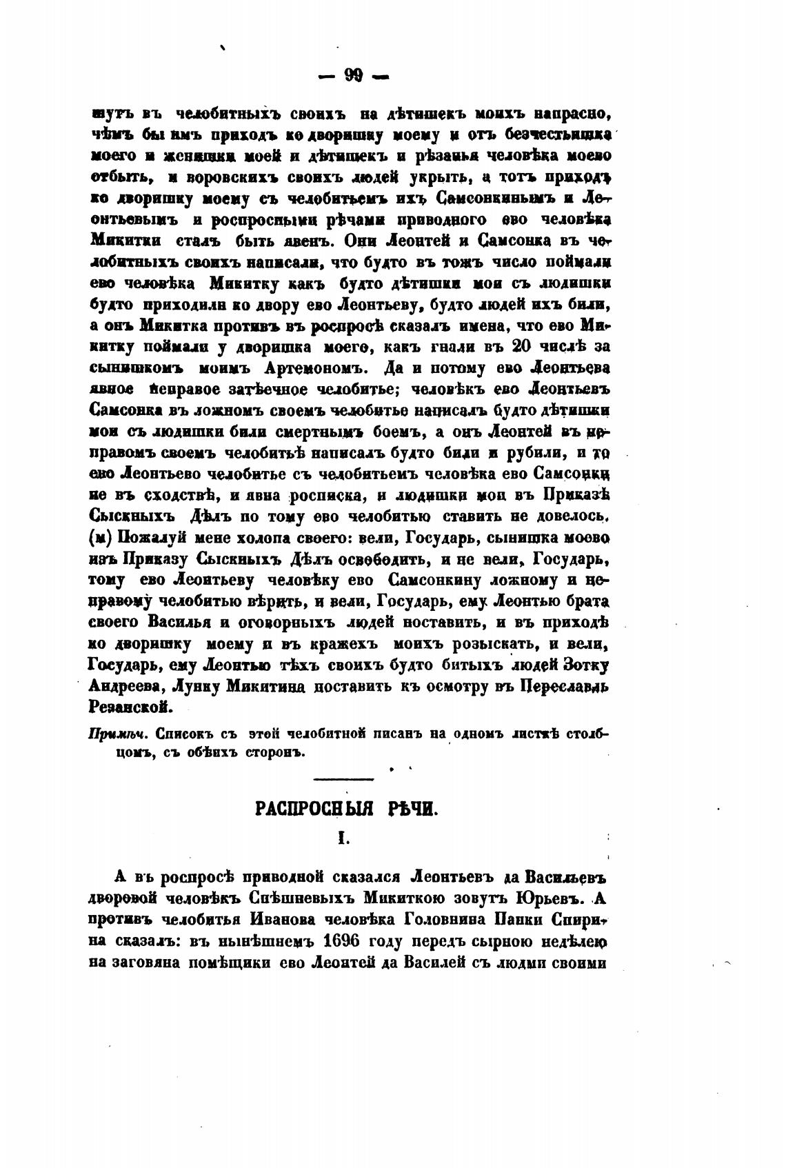 Пришьч. Списокъ съ этон челобитной писань на однонъ листь сток