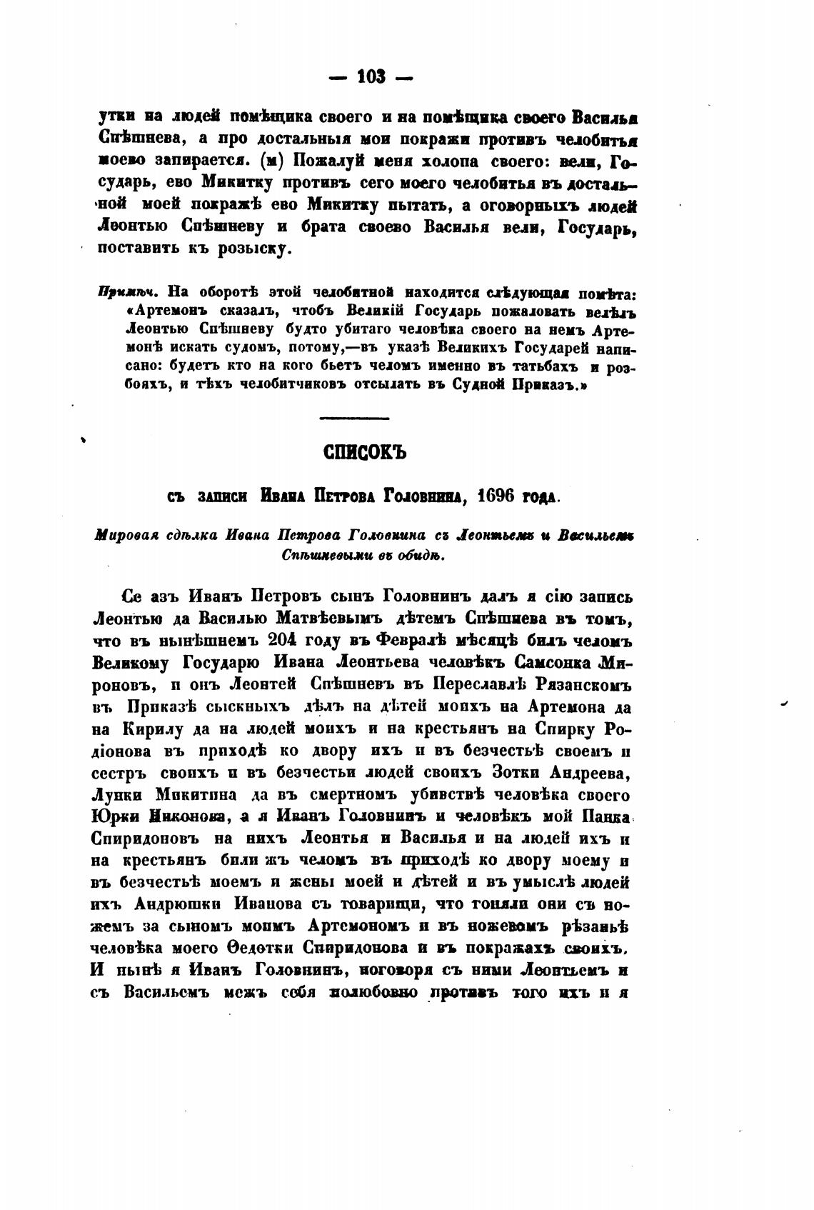 Сп±шнева, а про достальныя мои покражи противь челобитья