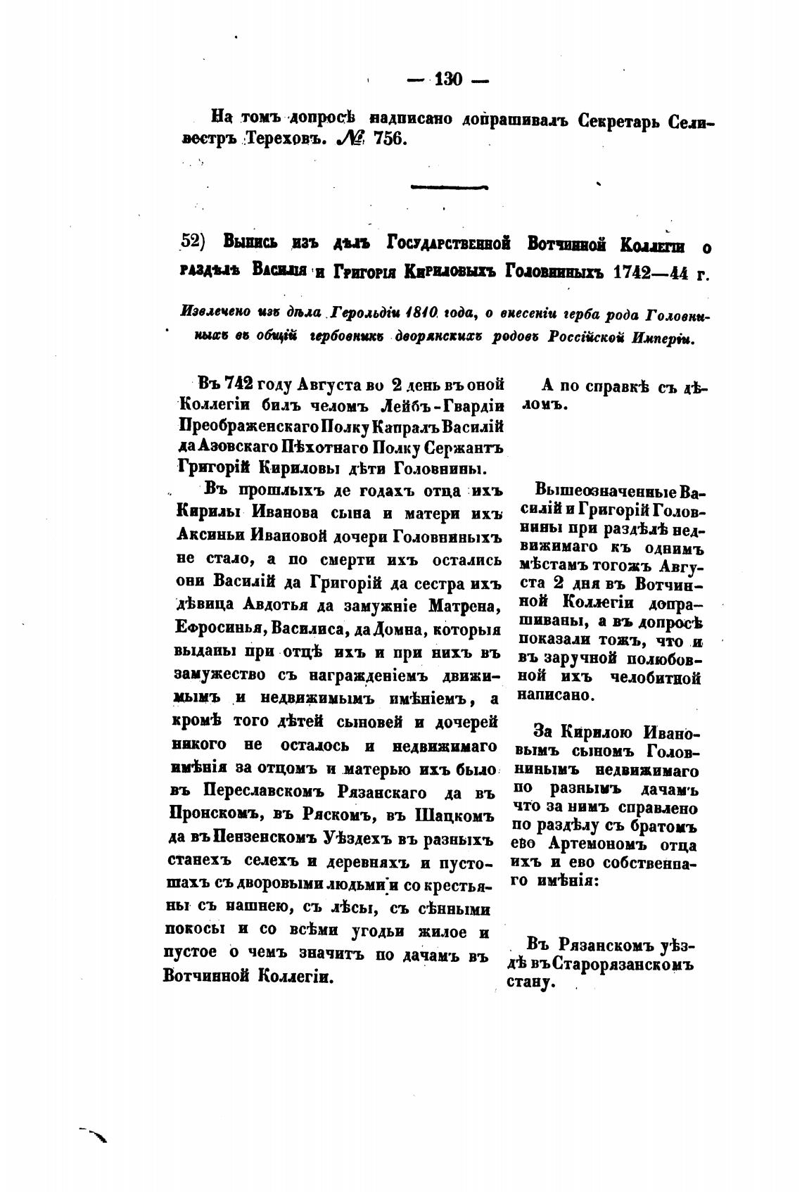 ВАСИН Грторш Кириныхъ Головинныхъ 1742—44 г.