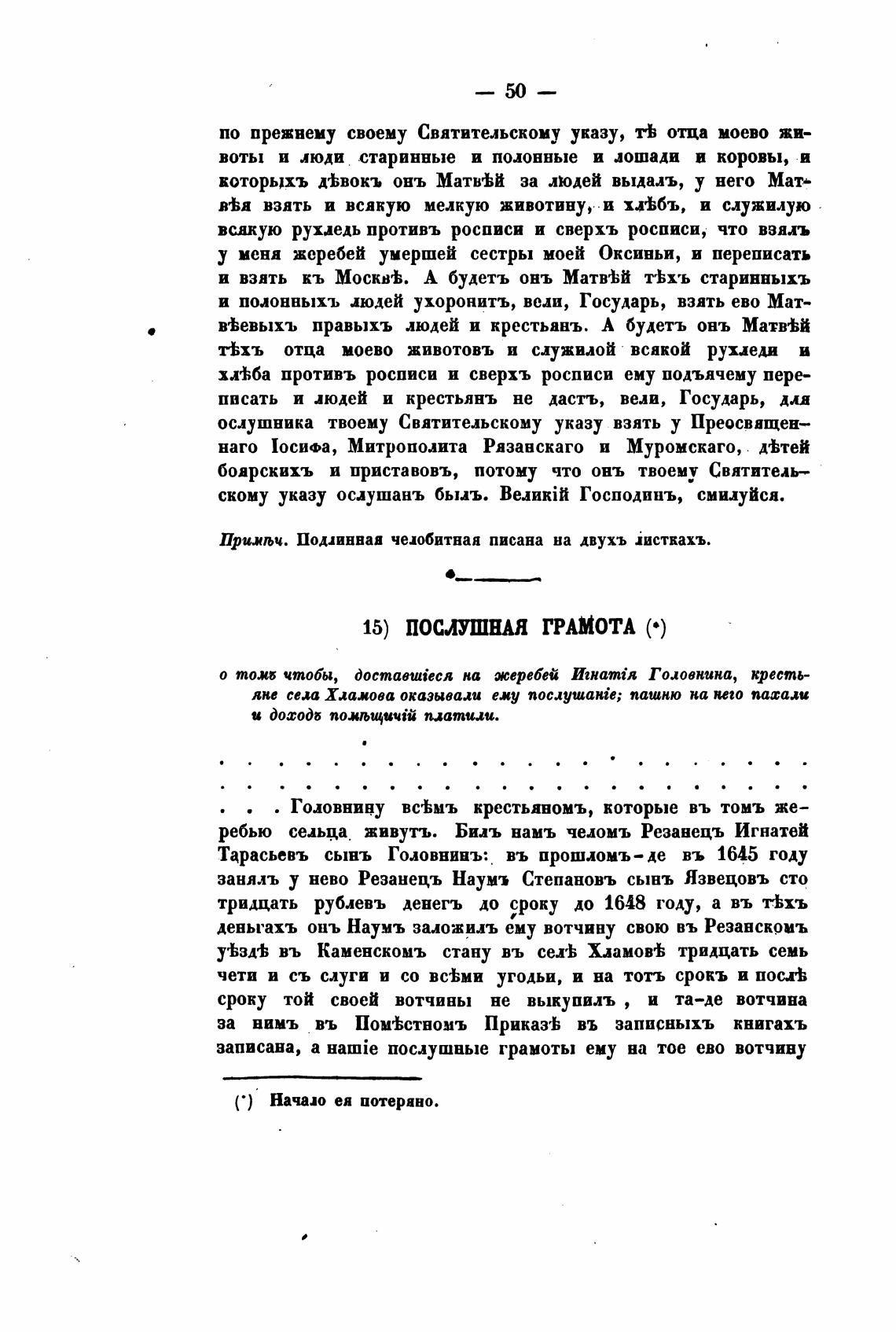 Прихљч. Подлинная челобитная писана на двухъ Јистнахъ.