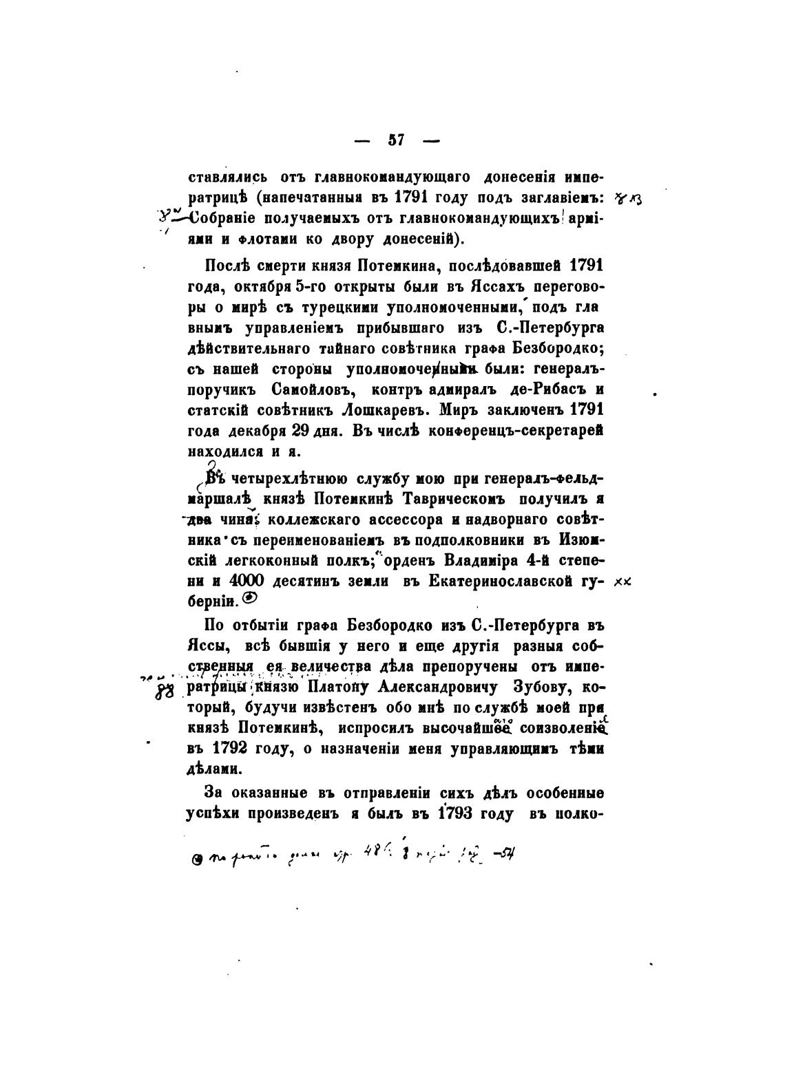 cTBTcki1 Лошкаревъ. Мирь заключень 1791