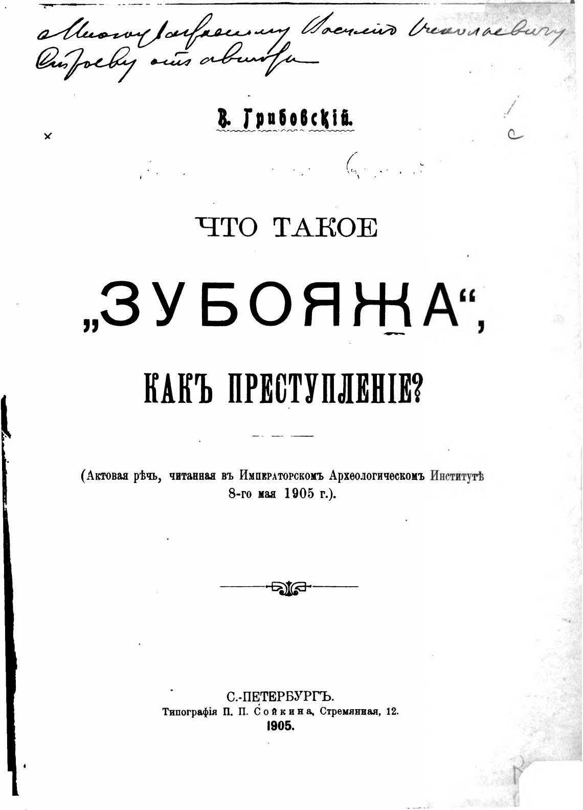 (Актовая р%чь, читанная въ ИМПЕРАТОРСКОМЪ Археологическомъ ИнститутЬ