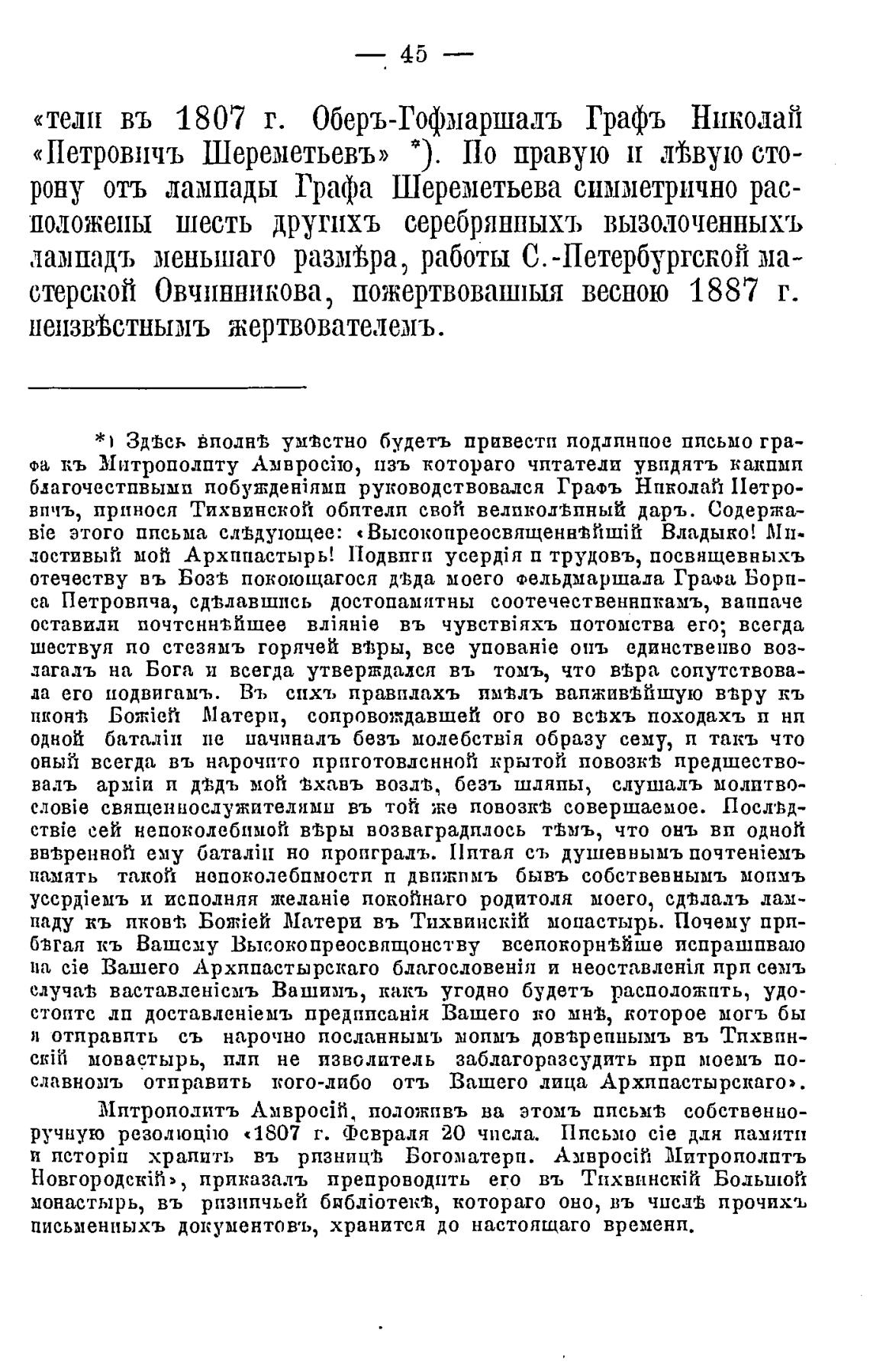 впчъ, принося Тихвинской обптелп свой велпкод±пный даръ. Содержа-
