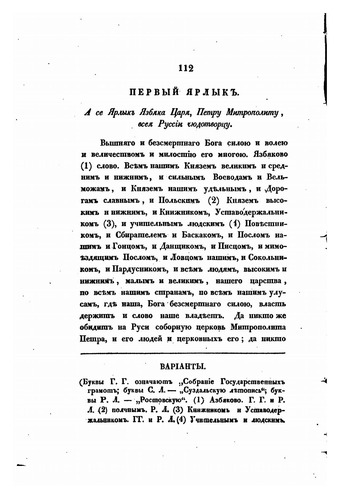 А се Ярлыкъ Язбяка Царя, Петру Митрополиту ,