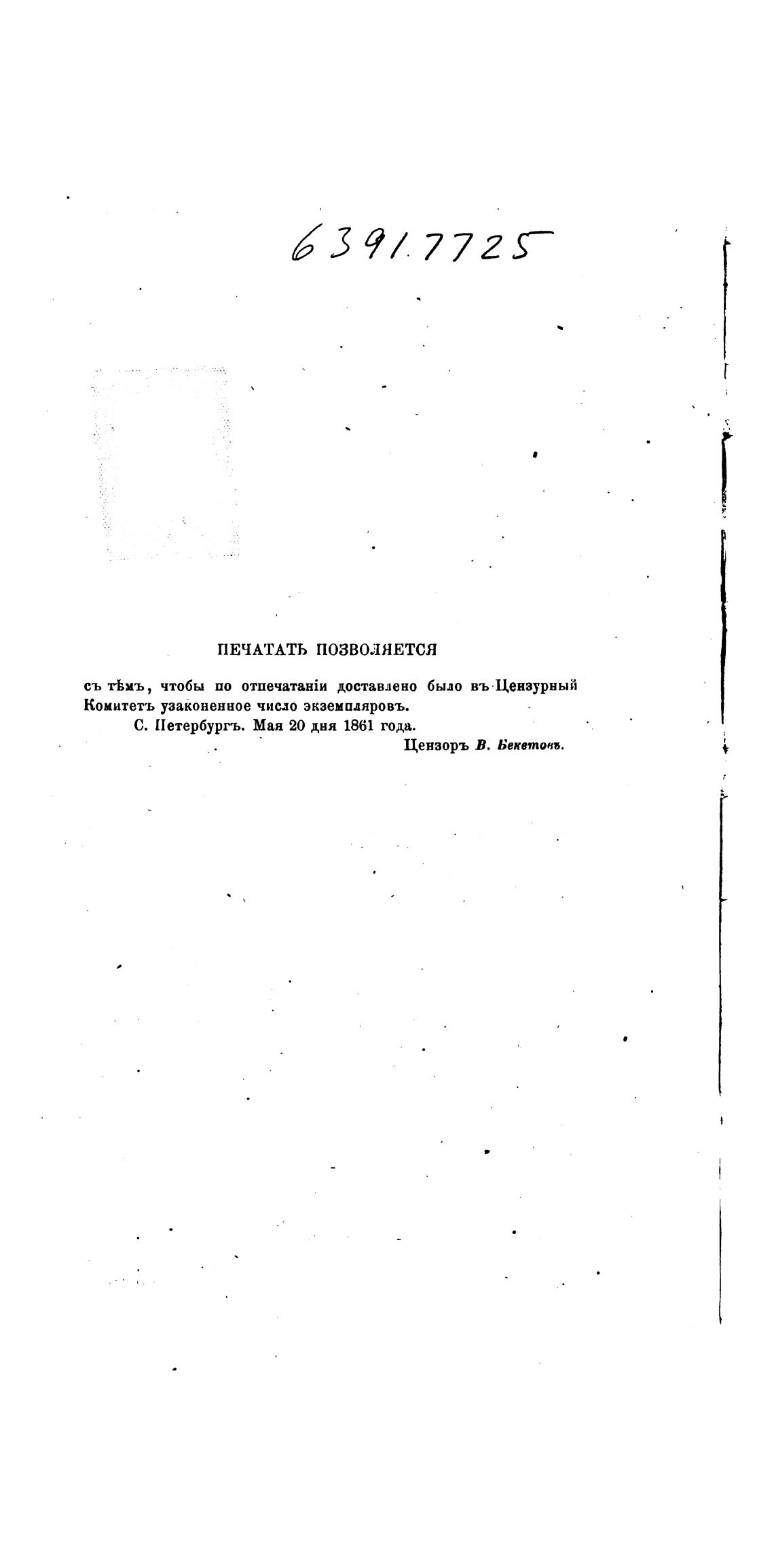 Цензоръ В. бекетонъ.