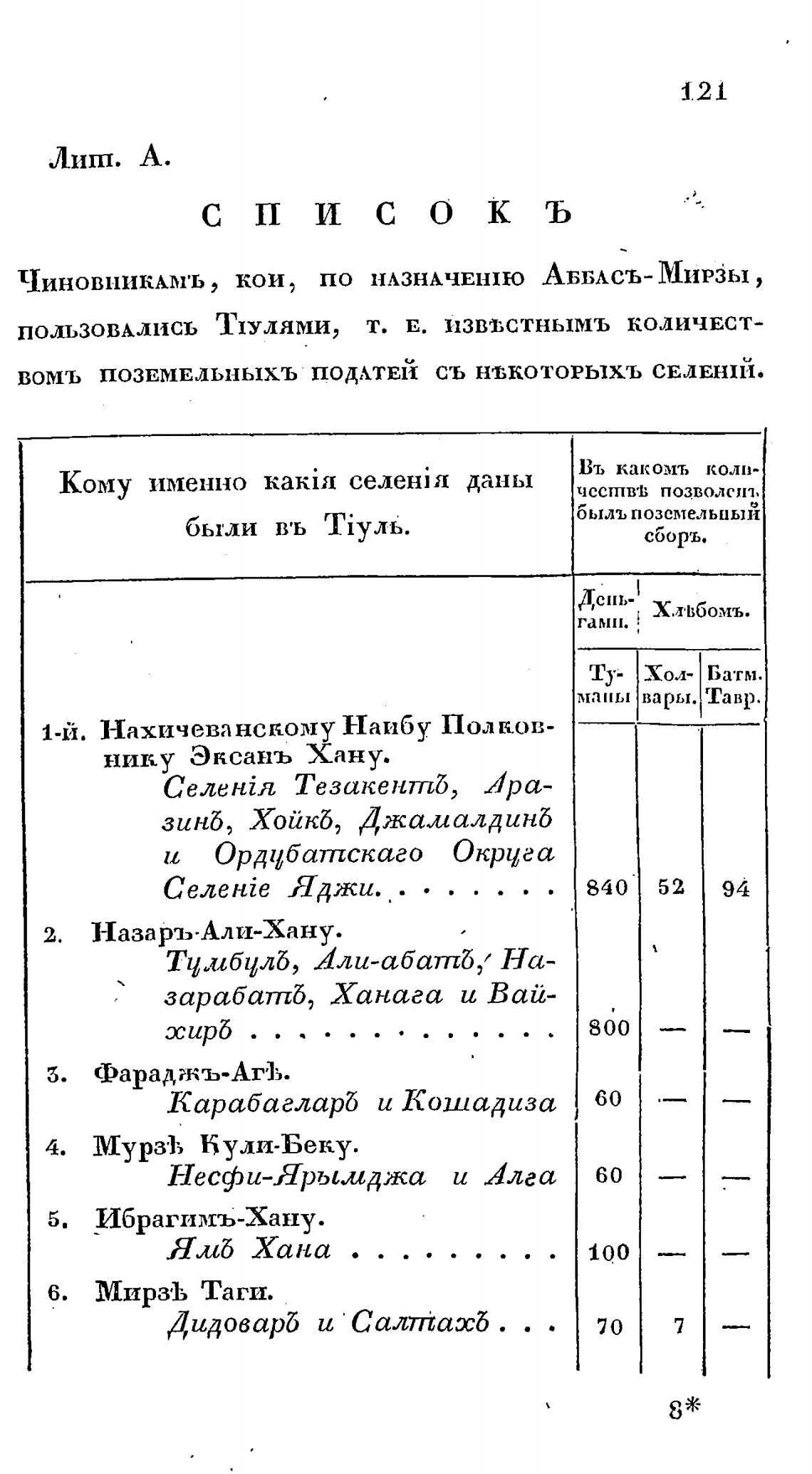 Чиновникхмъ, кои, по НАЗНАЧЕШЮ АББАСЪ- Мирзы ,