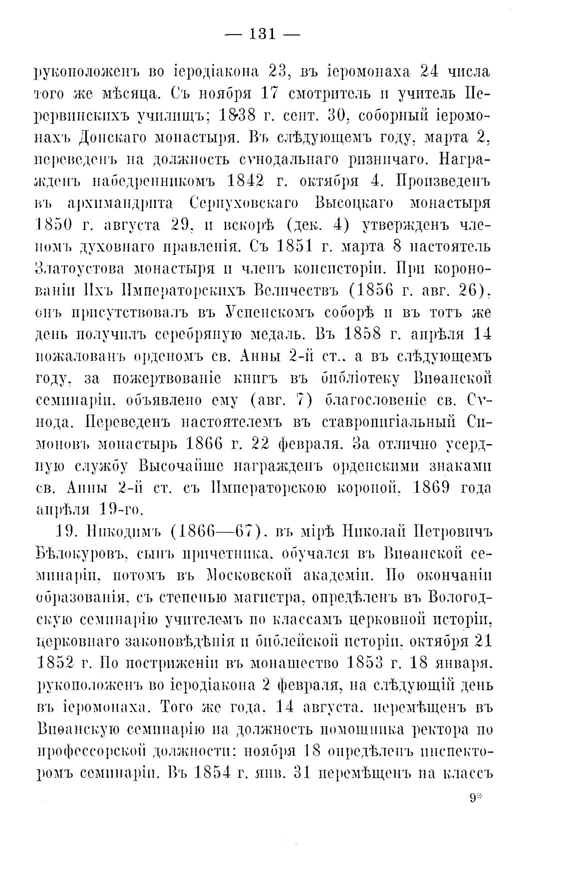 1852 г. По постриженйи въ монашество 1853 г. 18 января.