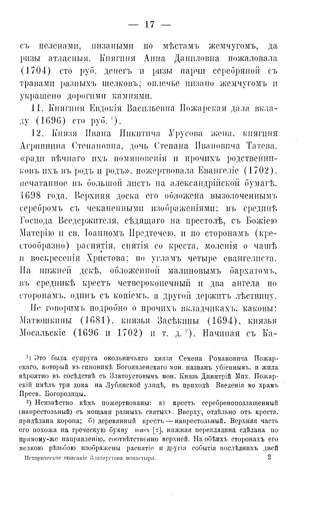 2) НеизвФ,стно кф,мъ пожертвованы: а) кресть серебренопозлащенный