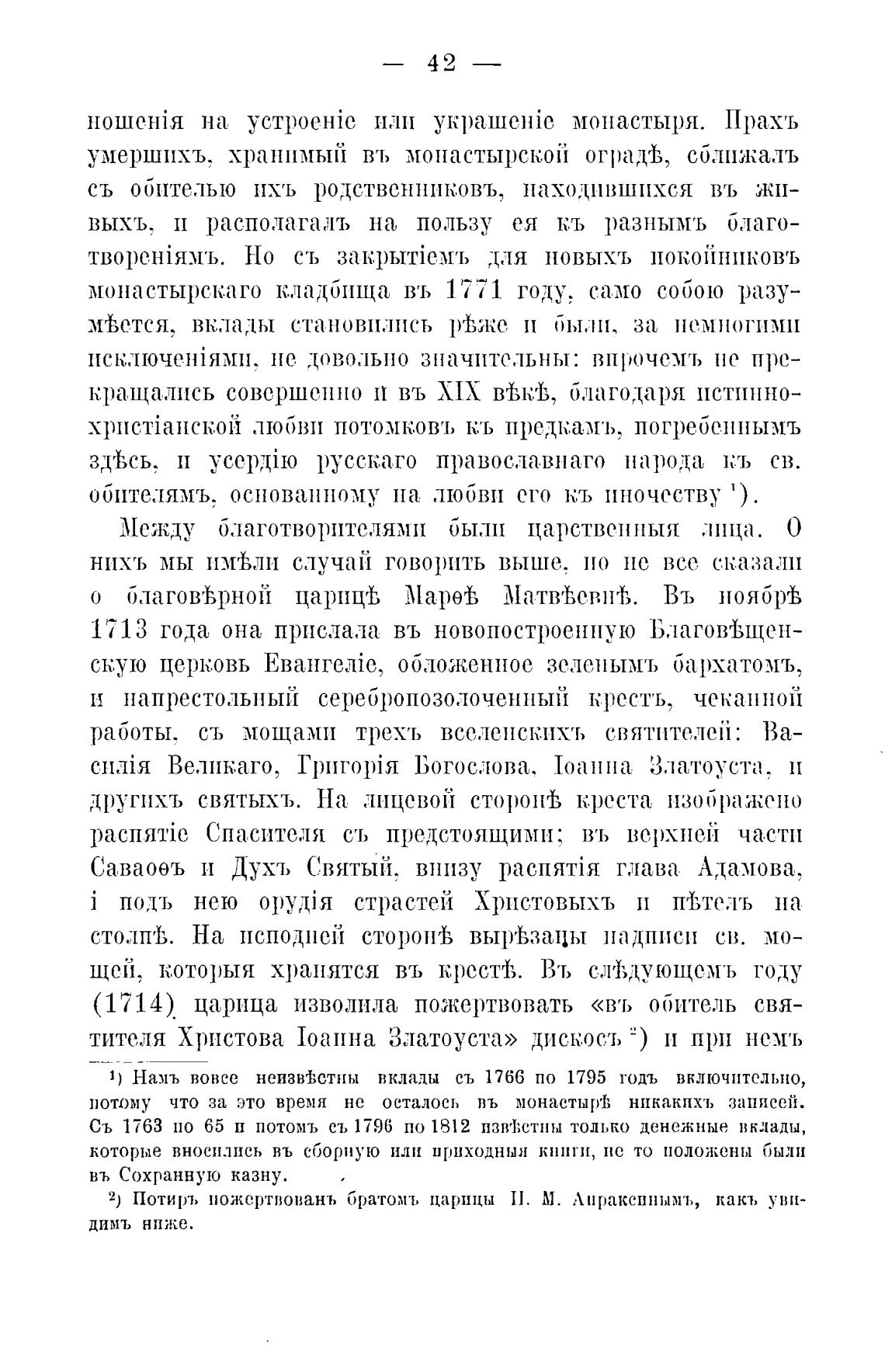 (1714) царица изволила пожертвовать «въ обитель свя-