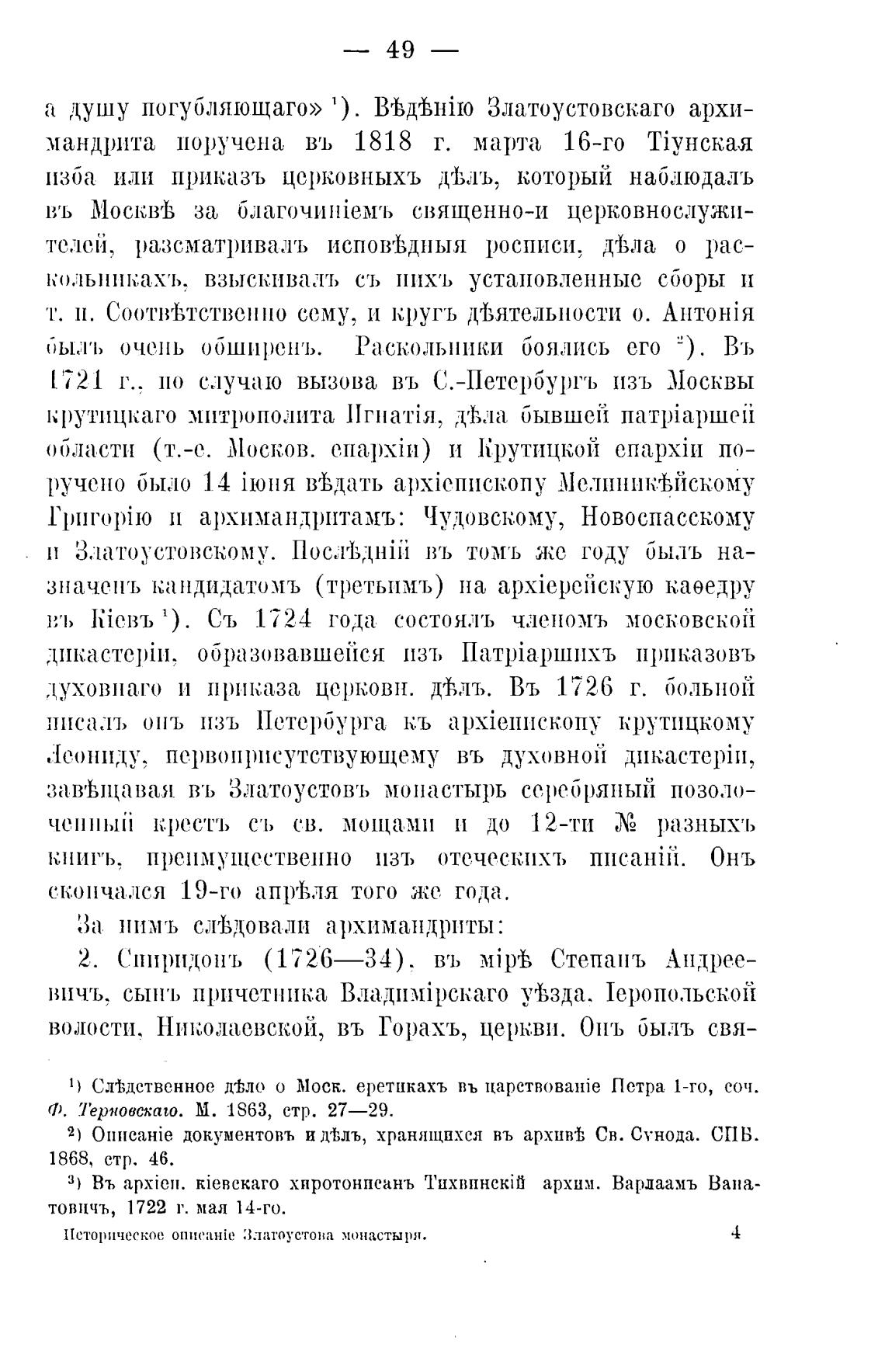 2) 011ItcaHie документовъ и Д'Ьлъ, хранящихся въ ар.х1иЊ Св. Сунода. СПБ.