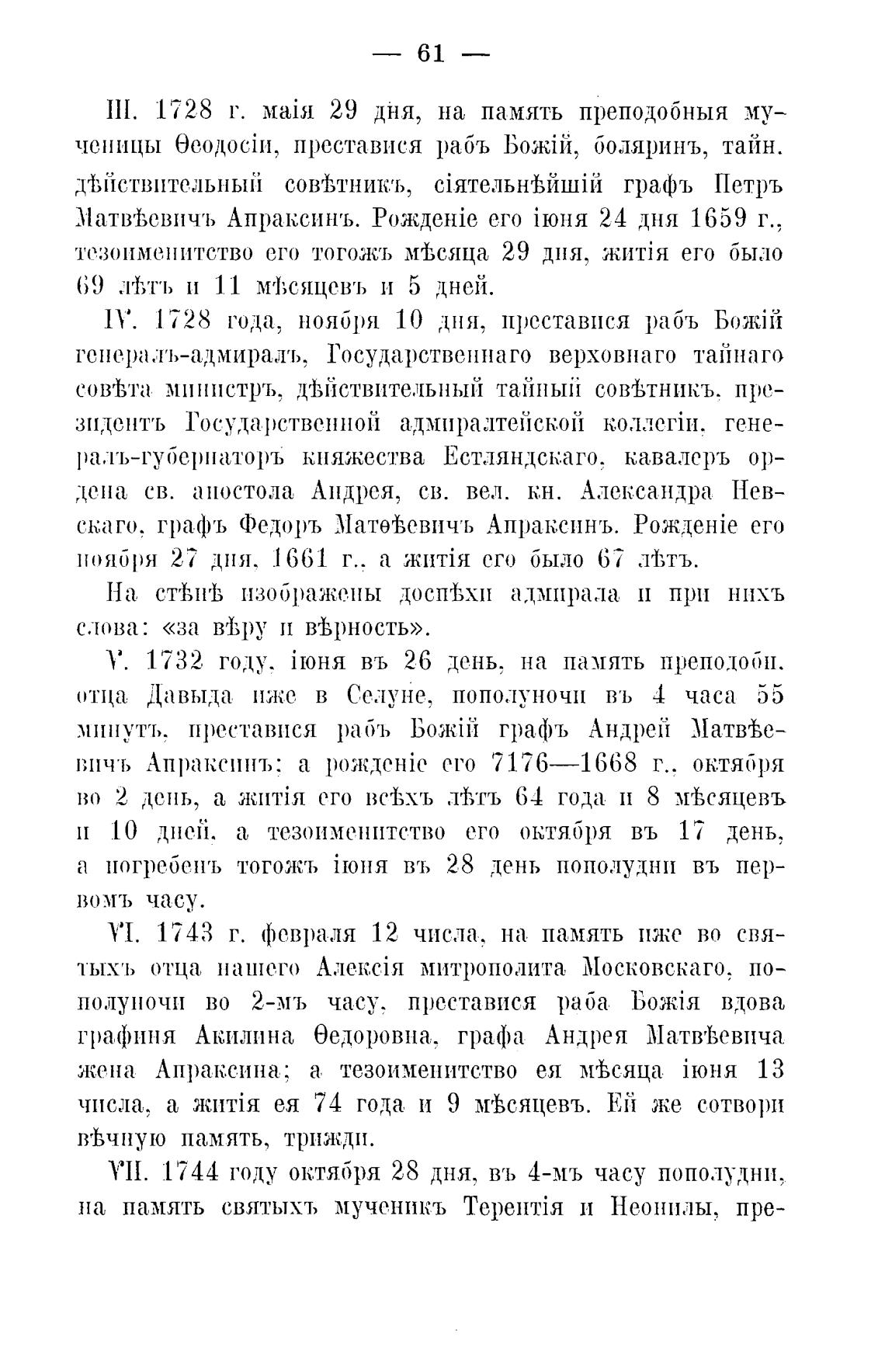 скаГО. графъ Федоръ Матл;евичъ Апраксинъ. его
