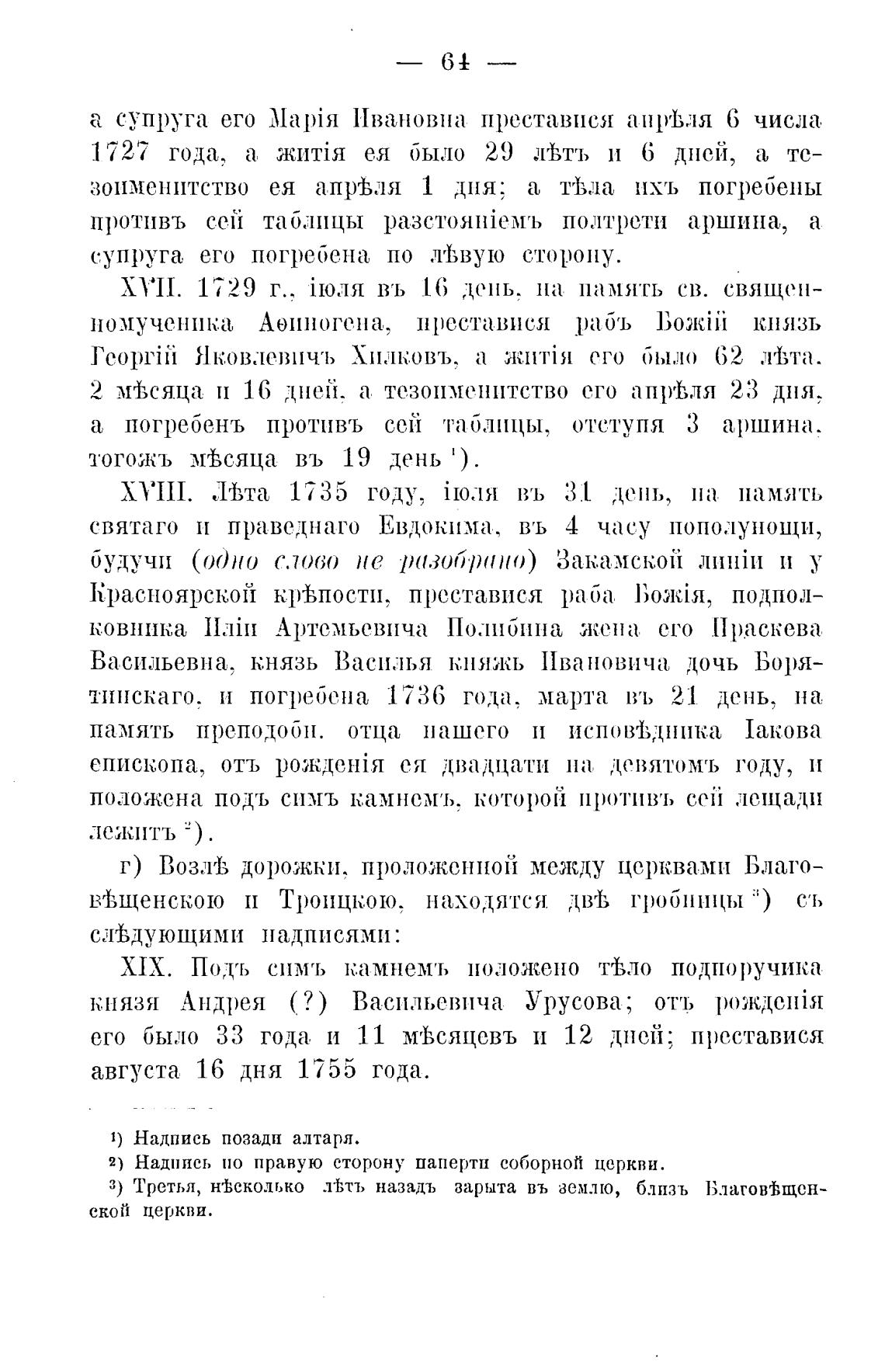 а погребень противь сей 'габ.лицы, отступя З аршина.