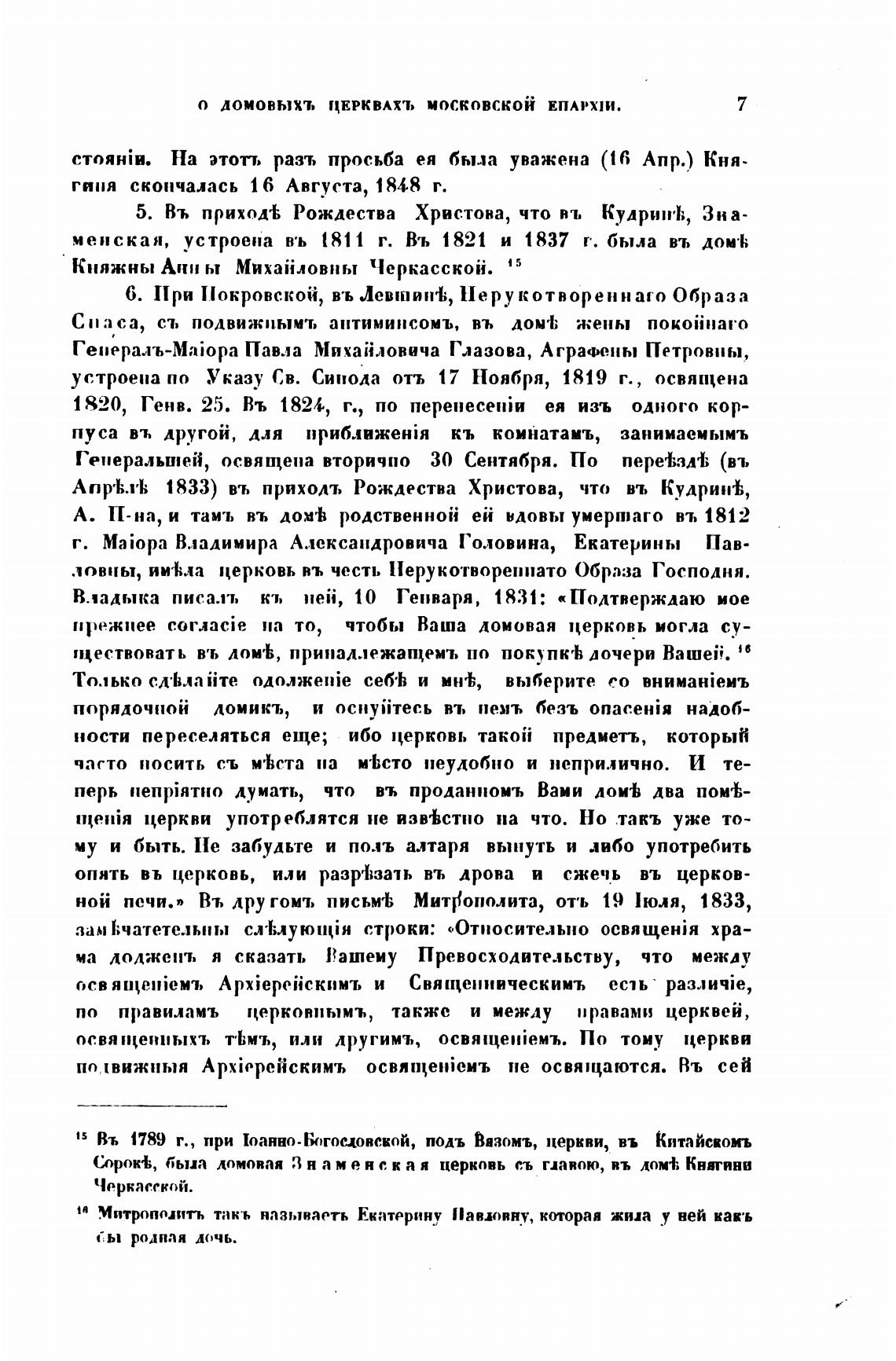 О ДОМОВЫХЪ ЦЕРКВАХТ, московскоЙ ЕПАРХИИ.