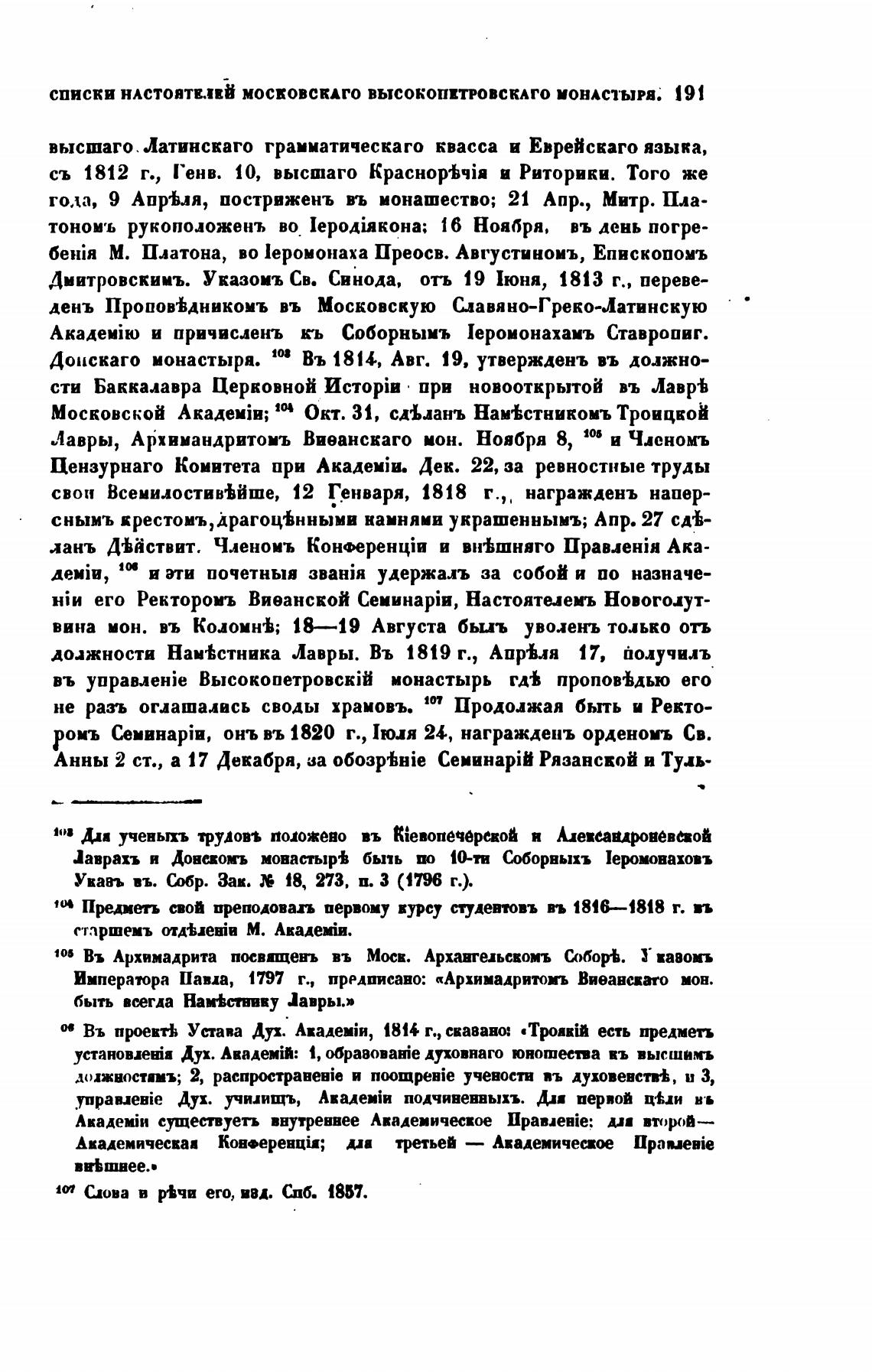 списки НАСТОЯТЕЛЕЙ московСКАГО ВЫСОКОПЕТРОВСКАГО МОНАСТЫРЯ. 191