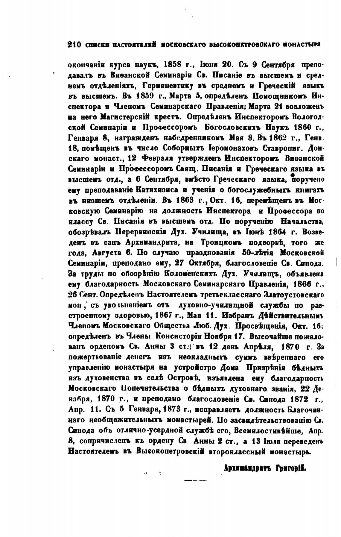 Настоятелемъ въ ВыеокопетровскШ второклассный монастырь