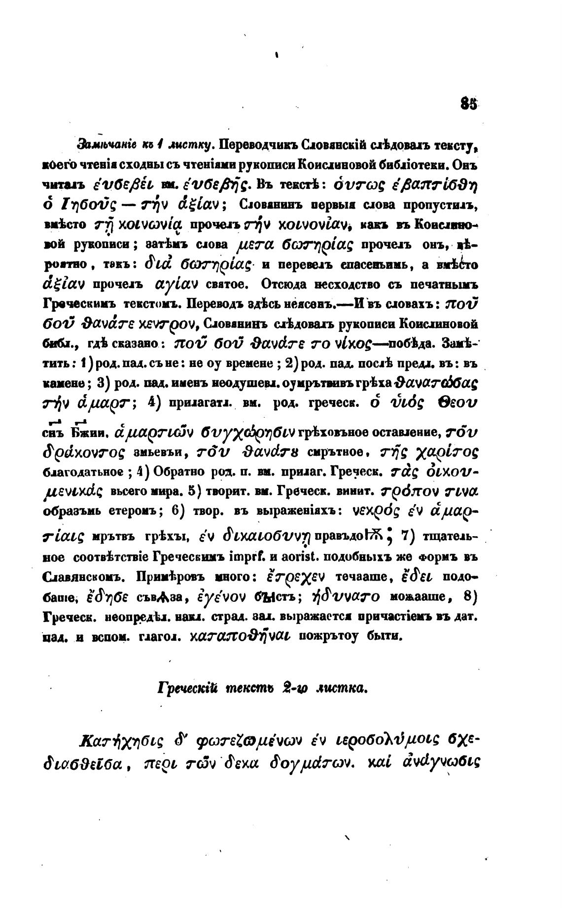 Грискимъ текстомъ. Перводъ вды неасввъ.—И •въ словахъ : лоб