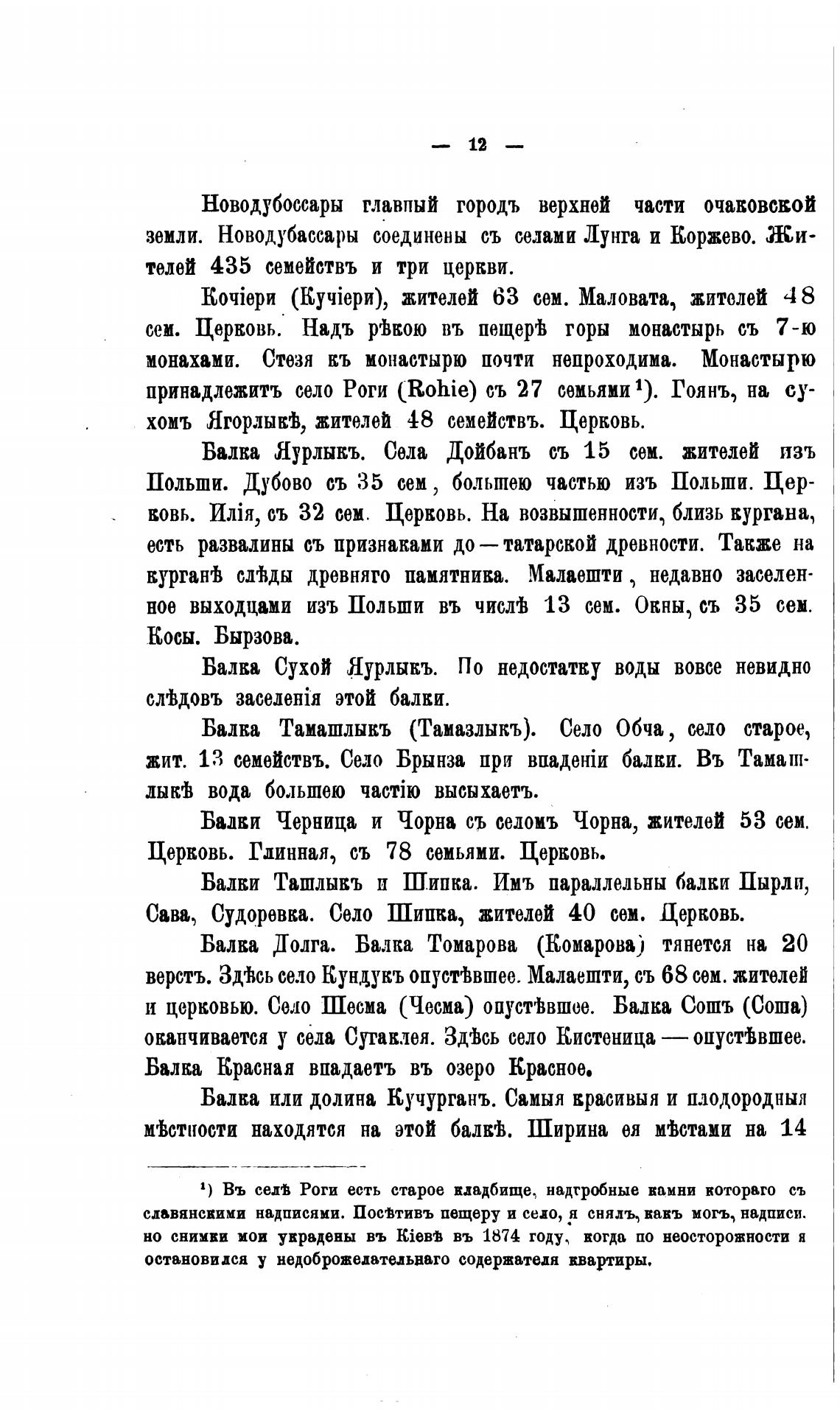 Балки Черница и Чорна съ селомъ Чорна, жителей