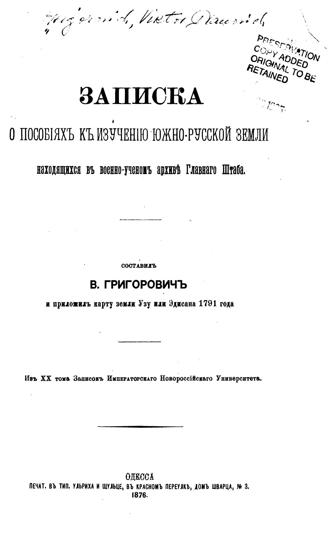 В. ГРИГОРОВИЧЪ