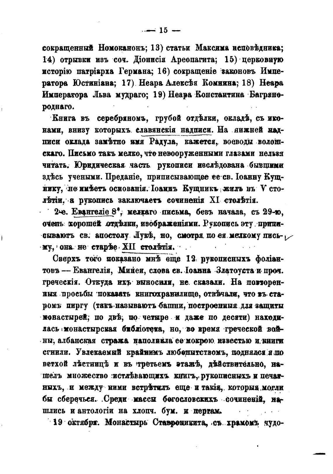 14) отрывки изъ соч. Ареопагита; 15) • церковную